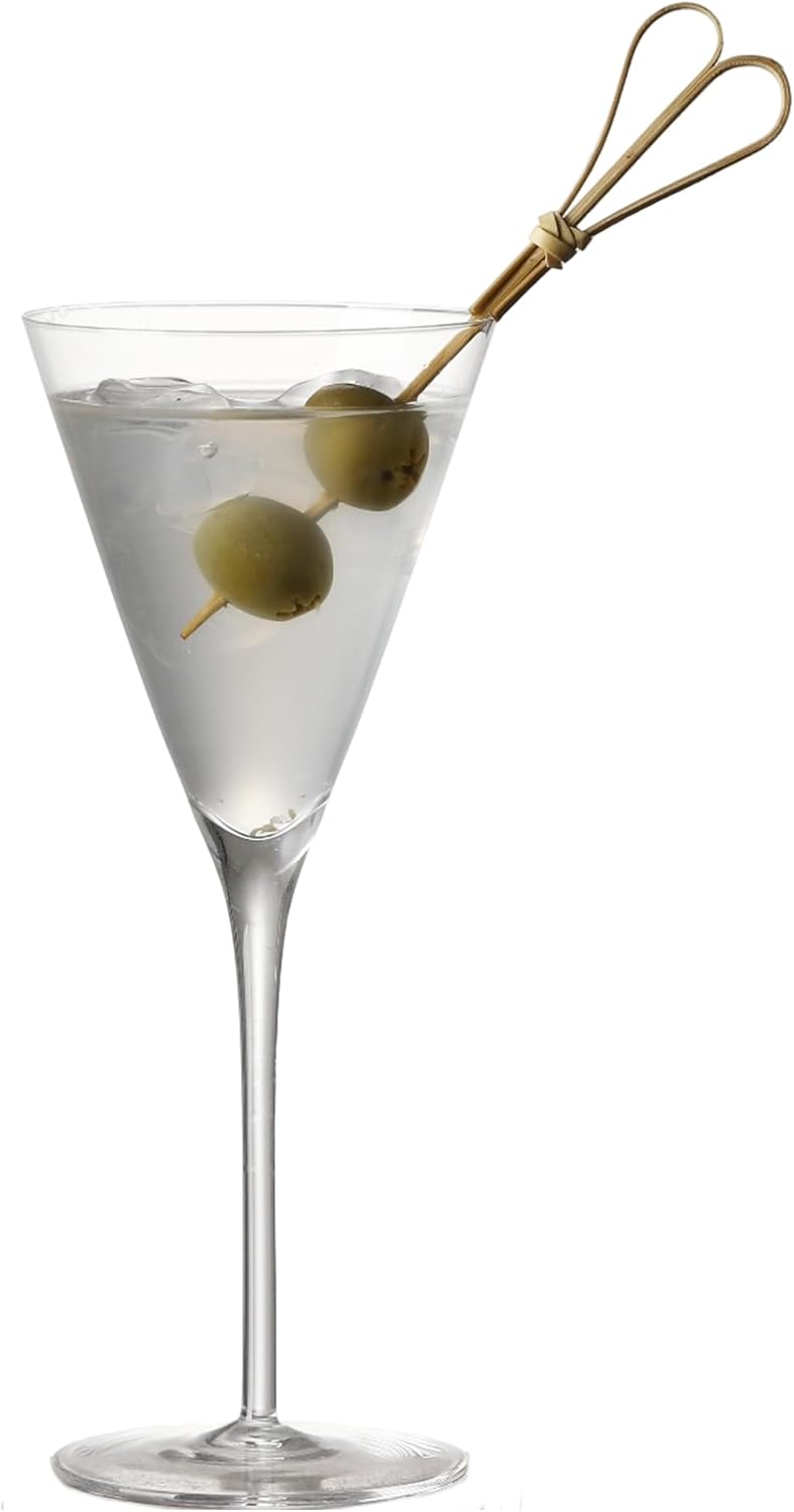 Elevate your cocktail experience with these sophisticated handmade martini glasses. This elegant set of four features a classic V-shaped design with long, graceful stems that add refinement to any home bar collection. Each glass holds 4 ounces, making them perfectly sized for serving martinis, manhattans, and other upscale cocktails. The crystal-clear glass construction beautifully displays your drinks while the sturdy base provides excellent stability. The elongated stem allows you to hold your drink without warming the contents, maintaining the ideal serving temperature. These versatile cocktail glasses are expertly crafted with meticulous attention to detail, making them ideal for both intimate gatherings and special occasions. The trumpet-shaped bowl and modern styling create an impressive presentation that will enhance your drinking experience. Each glass showcases precise craftsmanship that makes it not just functional, but also a stunning addition to your barware collection. Hand washing is recommended to preserve their pristine appearance. The set arrives carefully packaged to ensure safe delivery of these delicate pieces.