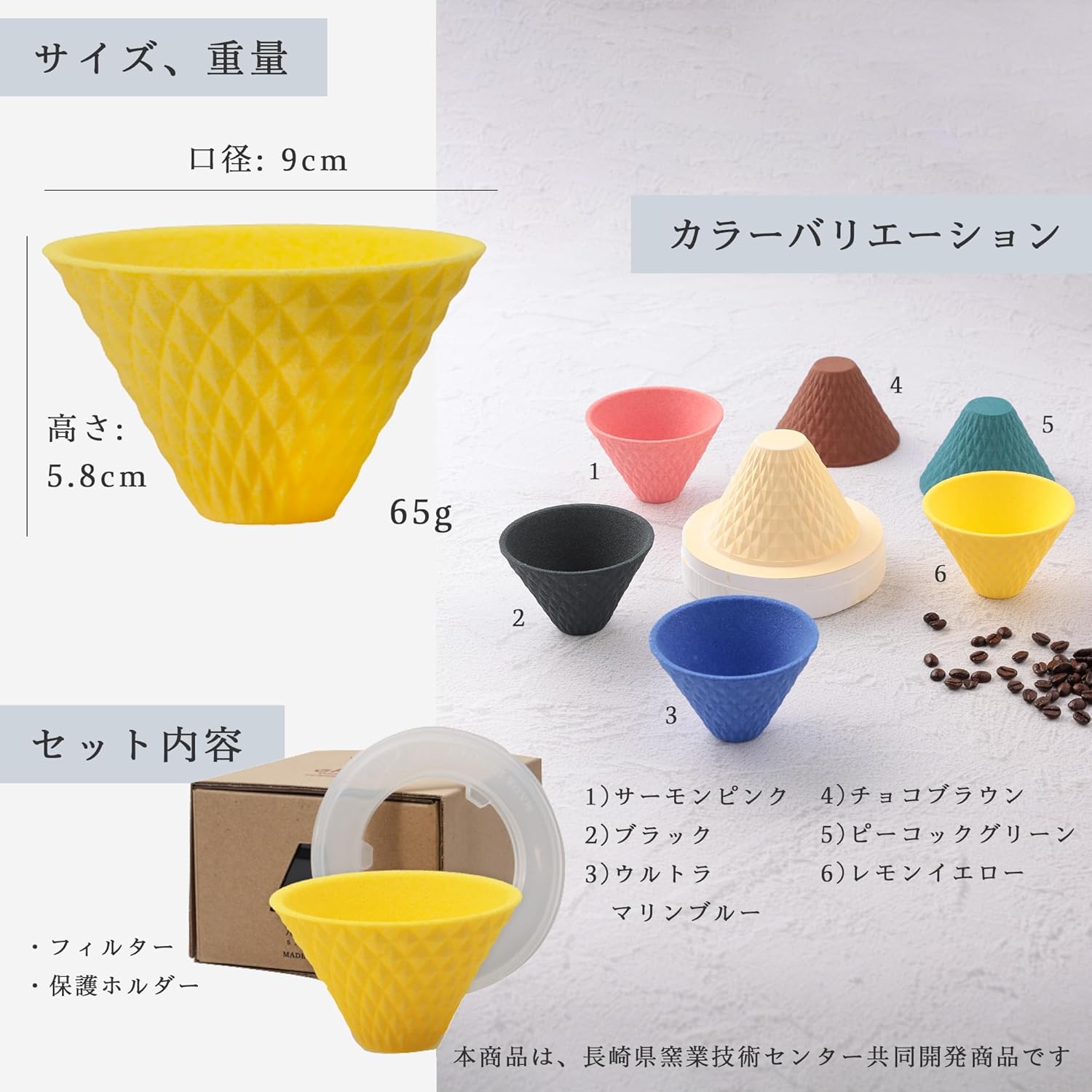 Enjoy the Original Taste of Coffee Ceramic Coffee Filter ekubo The ceramic coffee filter "ekubo" enhances the original taste of your coffee without the absorption of the taste caused by paper filters. Many people are surprised how coffee was such a taste and aroma. Enjoy the fresh taste and aroma. Significantly improved clogging that was a problem of conventional products and is easy to maintain. The uneven cut surface on the side has a "lotus effect" which eliminates clogging with conventional ceramic filters using the role of filtration structure. The surface has a 50 micron pore (size of a single hair) and the far-infrared effect unique to ceramics, making the taste more mild. No paper filter needed. Less waste, environmentally friendly and economical. An eco-friendly and renewable eco product that reduces the consumption of forest resources used for paper filters. The lotus construction prevents the filter from clogging up than conventional ceramic filters, making maintenance a breeze. Find your favorite color, and enjoy a mellow fragrance and a mild coffee with the far infrared effect of ceramics. Care Instructions: It can be washed with water and brushing after normal use. If you are concerned about the speed of filtering a little slow, please boil it in warm water for 5 to 10 minutes. Boiling is very dangerous, so please use tongs etc.