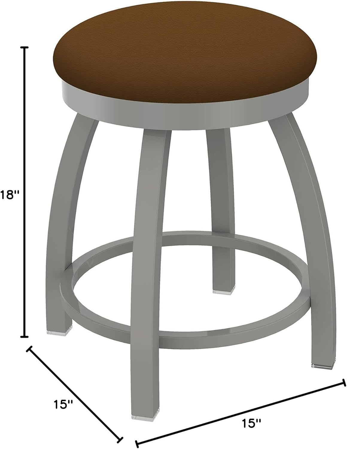 Customize your very own Vanity stool with the help of the Holland Bar Stool Co. this anodized nickel Misha swivel Vanity stool has a contemporary design. The seat ring conceals the swivel for a clean look. The frame is made from commercial quality 16 gauge, 1 3/4 inch tube steel with solid MIG welded joints to strength and durability. The powder coated finish resists chips and scratches and ensures a long-lasting, rich appearance. The wood seats are 1 3/4 inch solid hardwood (oak or Maple) and are dished for amazing posterior comfort, making sitting for minutes or hours a pleasure. The cushion seats are of the highest quality as well, utilizing a breathable, commercial grade vinyl or fabric. At the heart of the Cushion is 2 1/2 inches of highly-dense, us Made foam that provides maximum support and will not breakdown in a couple years. You won't find a higher quality stool on the market. If you are going to finish your counter, dining, desk, or Vanity area - do it right, with a stool from the Holland Bar Stool Co. ** 5 year residential structural frame ** Lifetime residential 52 ball bearing swivel**made in USA**