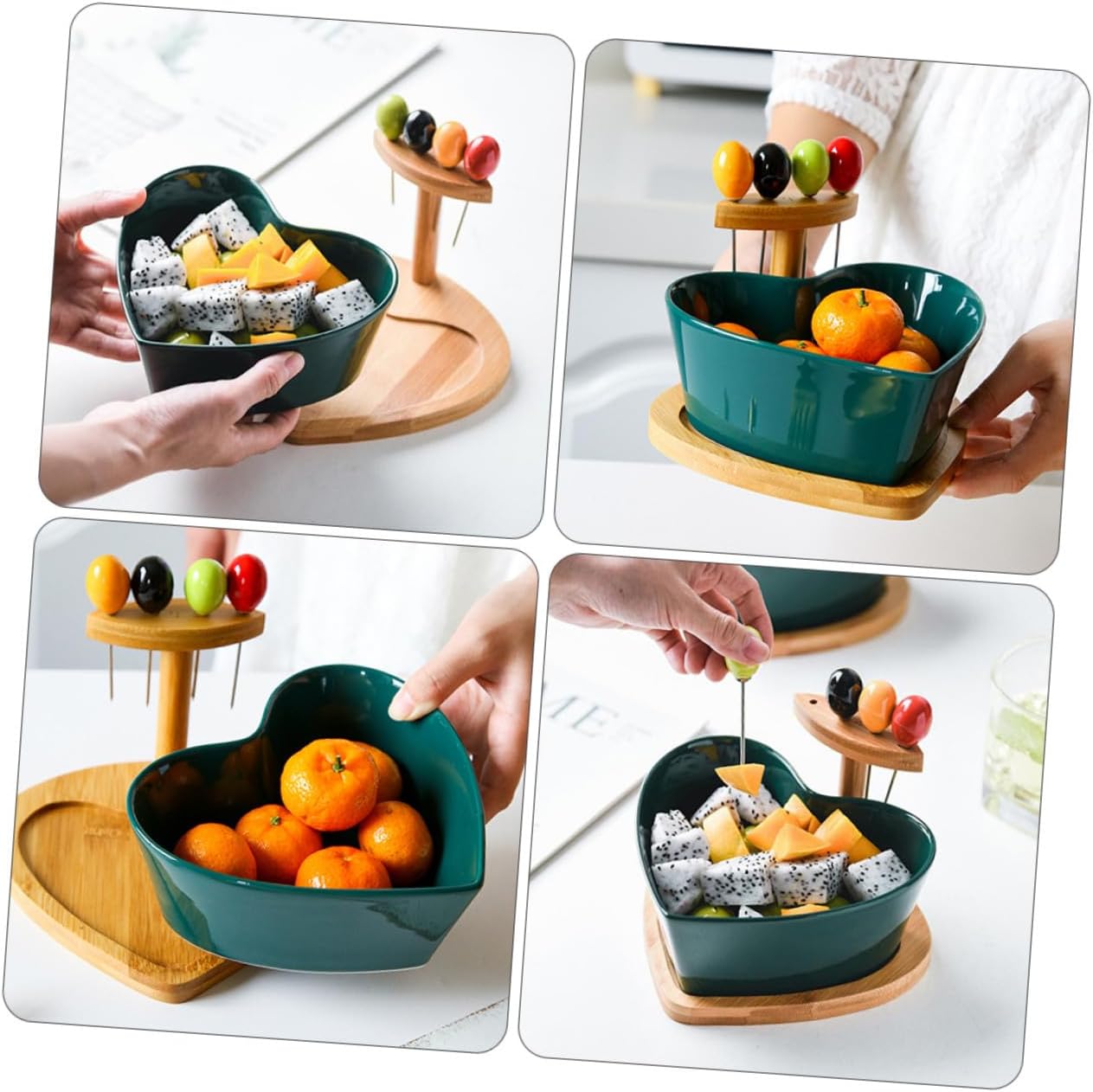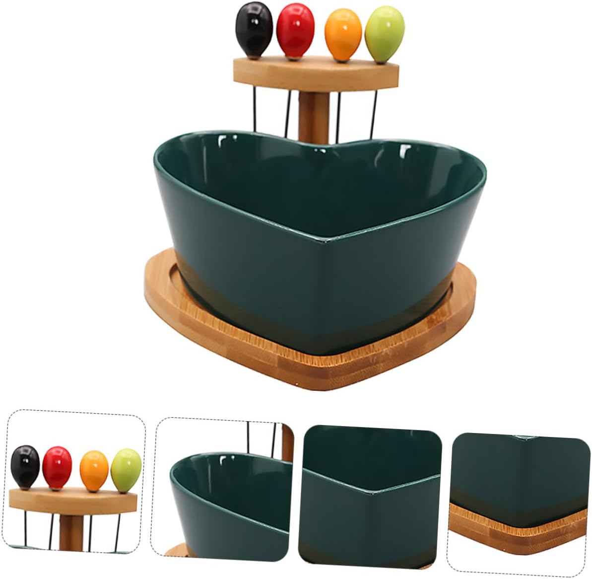 Package Include 1 x Bowl 1 x Stand 4 x Forks Features -Product Info:Fruit Bowl -Material: Ceramic Wooden - The wooden tray is easy to move the salad bowl, and can protect the table from being scalded when the ceramic tableware is holding hot food Ceramics Salad Bowl. - The plate is made of ceramics material, so they are safe for your health. - Perfect for appetizers, chips, sweets, fruits and vegetables, dips and hot food Fruits Bowl. - With 4 colorful metal forks, it is very suitable for sharing food with friends and family. - Creative salad plate is lovely and fashionable enough for dinner, parties and casual gathering for everyday use Salad Bowl with Forks.Goods InformationFruits Bowl Natural modern design, premium ceramics material will showcase your favorite foods.Ceramics Salad Plate This is a heart shape salad bowl, which is great as salad plate, dessert plate and as vegetable plate.Salad Bowl with Forks Its heart shape design makes it looks beautiful, perfect for a variety of foods