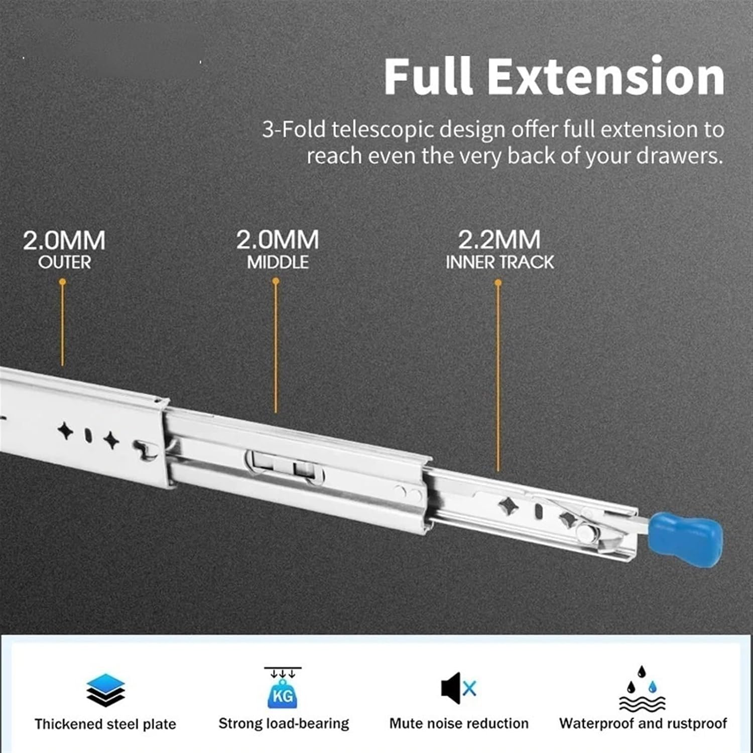 1.Soft-close push-open drawer slides are designed to push open quietly and smoothly and close automatically.2.The slides are smooth and durable, and easy to install.3.drawer slides feature a full-extension design that opens completely for easy access.