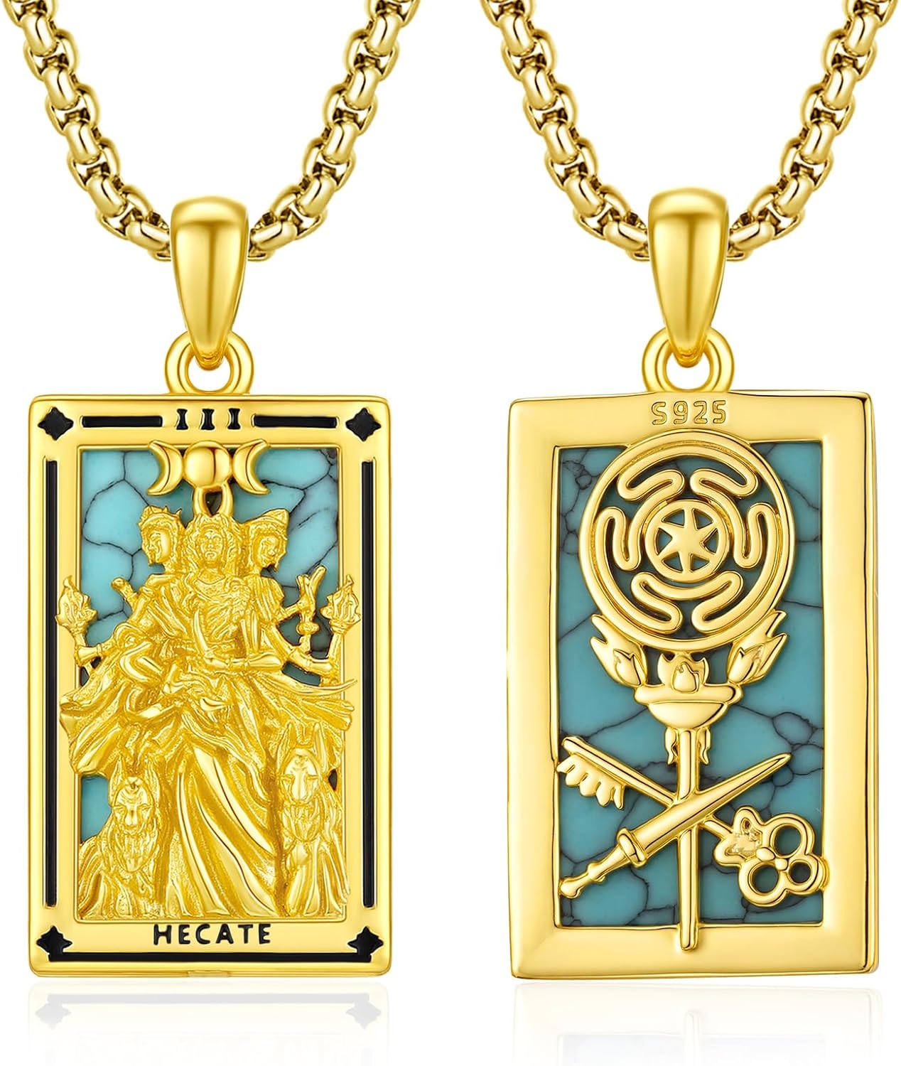 | Material | Hecate Necklace Gold Plated, Sterling Silver, Triple Moon Goddess Necklace |