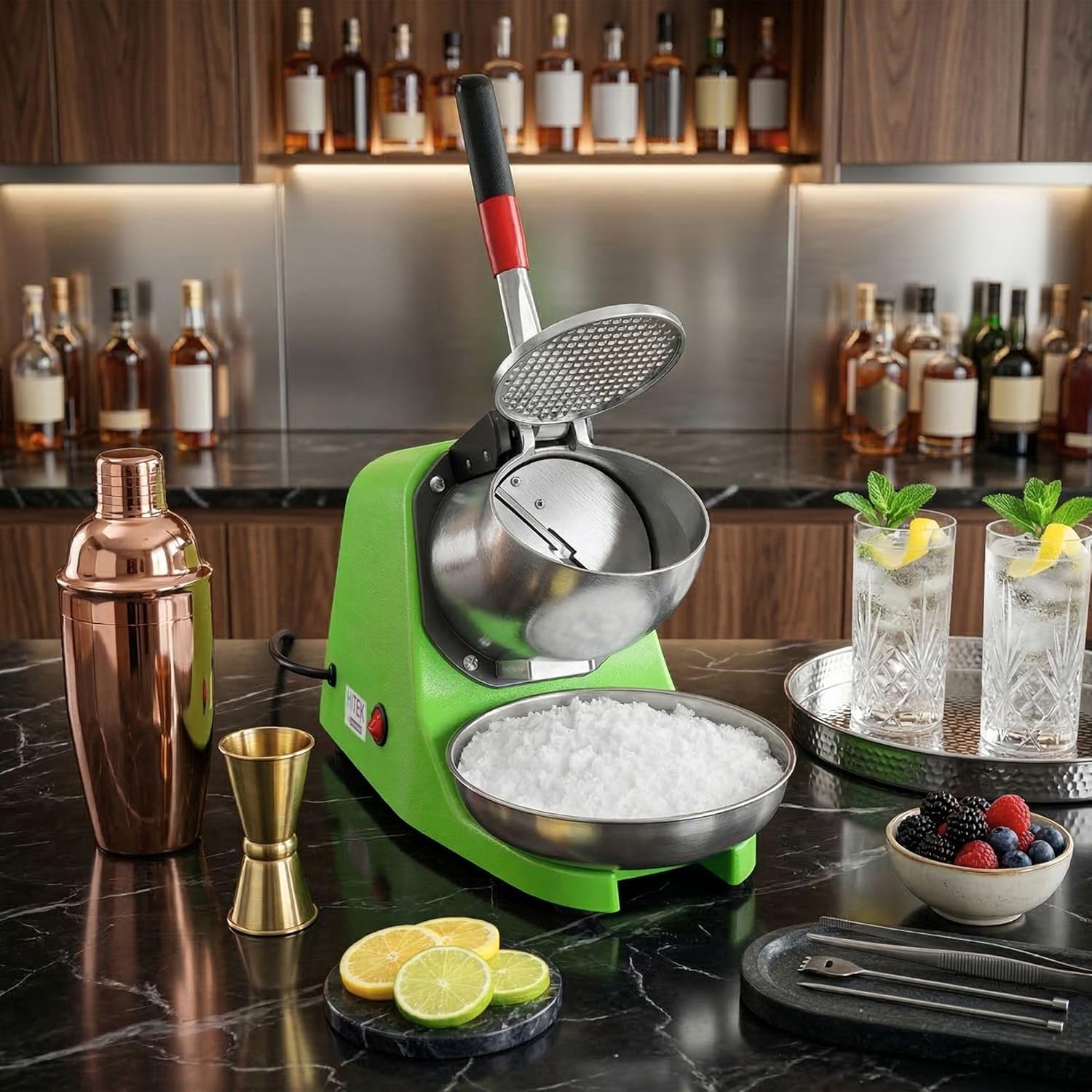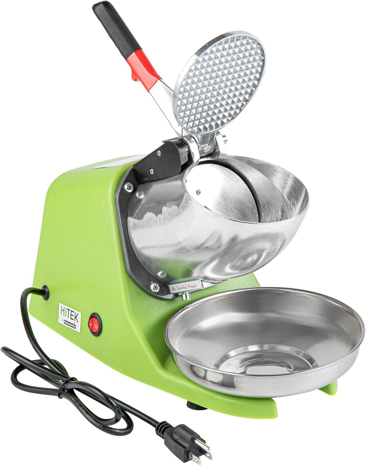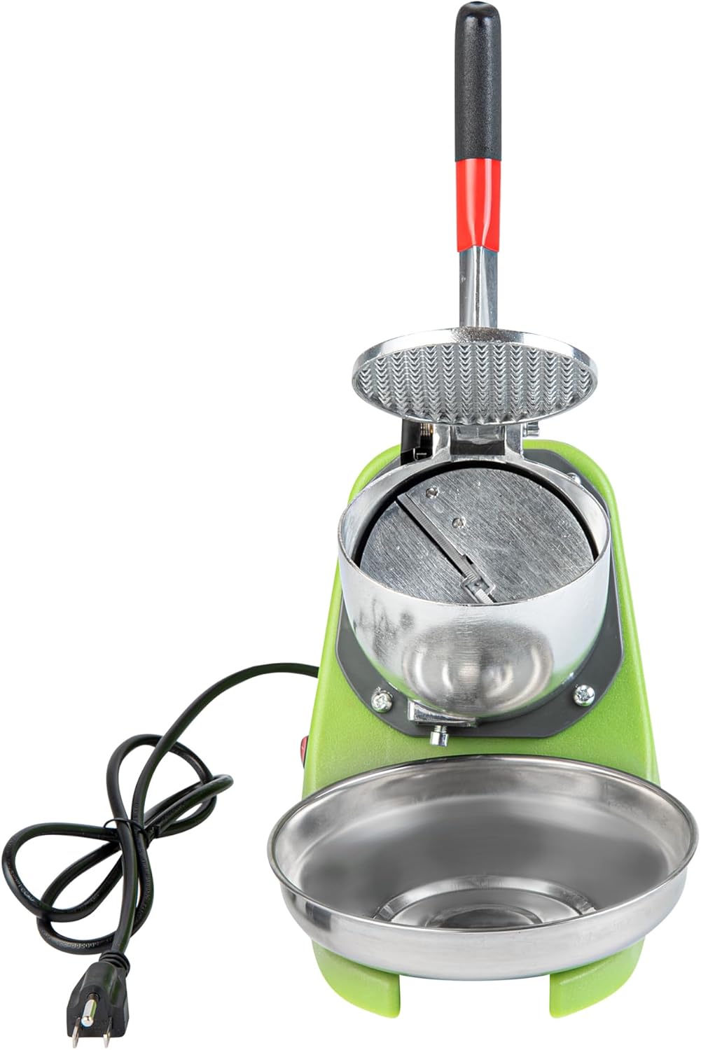 Upgrade your frozen treats with our Hi Tek Green Countertop Ice Crusher. This ice shaver boasts a powerful 110V, 350W motor for fast and efficient ice shaving. Ensuring ease of use, this electric snow cone machine is easy to operate and maintain for consistent performance. Designed with a stainless steel holding bowl, this shaved ice machine ensures cleanliness and durability in any commercial setting. Equipped with double stainless steel blades, this commercial ice-shaving machine can handle ice blocks, fruit blocks, and more, making it versatile for all kinds of frozen concoctions. The compact design of this ice-shaving machine allows for easy storage when not in use, making it an ideal addition to small spaces or mobile food businesses. With an attractive green finish and a remarkable capacity of 143.3 pounds per hour, this shaved ice maker ensures you can keep up with the high demand for delicious cold treats. Measuring 13.4 inches in length by 6.3 inches in width by 8.3 inches in height, this commercial ice cone machine efficiently fits on any countertop without taking up too much space. Sold in a 1 count box.