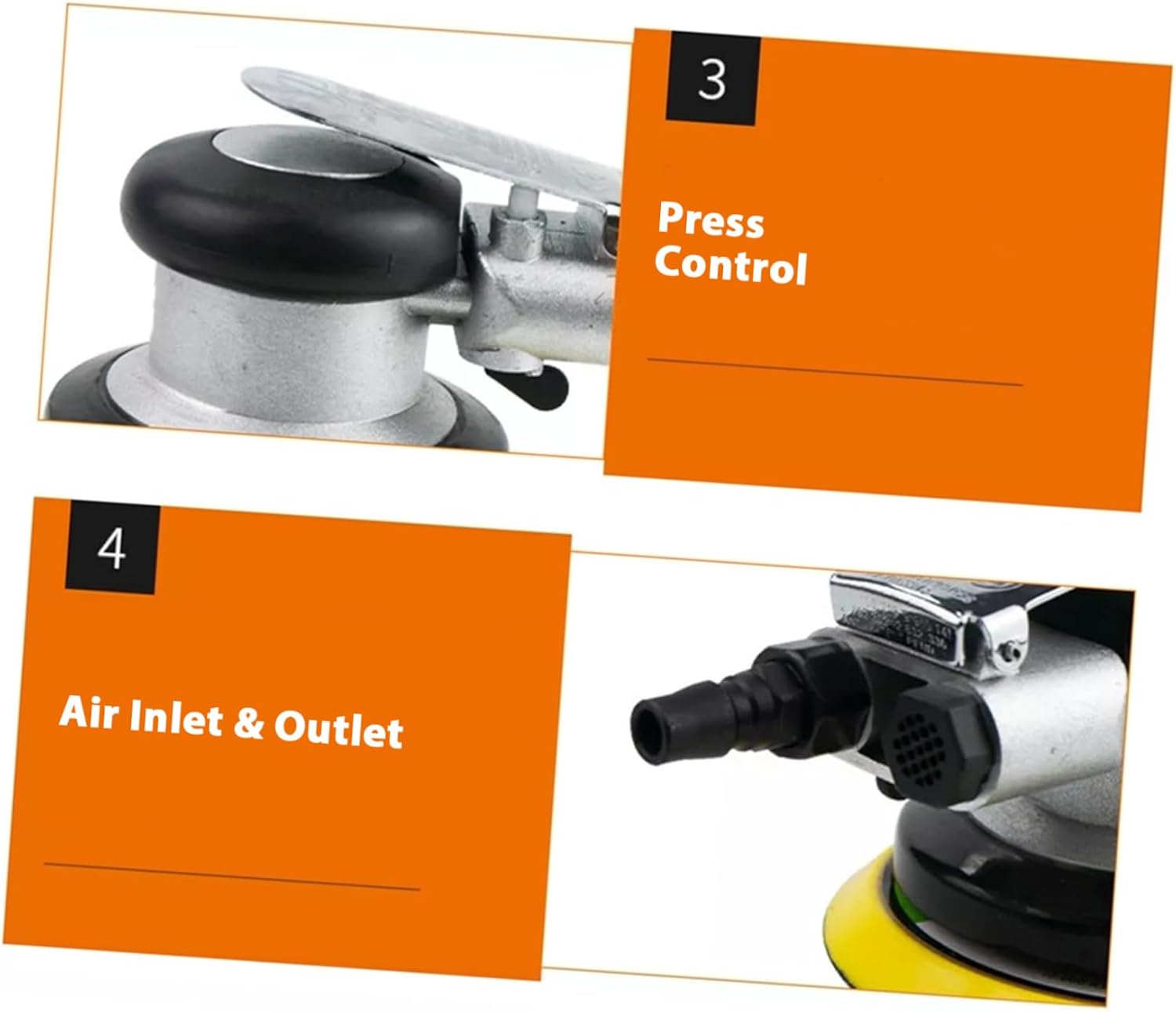 Package Include 1 sander Characteristics -Material:Metal auto body sanders -High-speed rotation: This pneumatic orbital sander delivers high-speed sanding, allowing you to quickly and efficiently smooth surfaces mini orbital sander -Easy to use: Our air sander is designed with user-friendliness in mind. It features a lightweight and ergonomic design, allowing for comfortable handling orbital sander pads -Versatile usage: This palm sander is widely used in woodworking, metalworking, automotive, and other industries, ideal for sanding, polishing, and shaping surfaces pneumatic polisher -Pneumatic power: Driven by air, this sanding tool offers consistent performance with less fatigue, allowing for extended use without compromising on efficiency hardwood floor sander -Revolving speed: 0-10000 air tools sander -Robust build: With robust components that can withstand heavy use, the woodworking sander handles demanding tasks and provide consistent performance automotive sanding machine -Size:17.00X10.50X10.50cm/6.68X4.13X4.13in pneumatic sander machine -Working air pressure: 0.6-0.8Mpa mini air sander -Color: conditioning tool -Air Inlet:1/4" sander tool pad diameter: 5'' sanding machineGoods Descriptionauto body file sander With a high revolving speed, it is ideal for auto , woodworking, and metalworking.floor sanders for wood floor Its ergonomic design allows for comfortable handling, making it suitable for extended use.disc sander The round air sander tool is a versatile and powerful tool designed for various sanding and polishing tasks