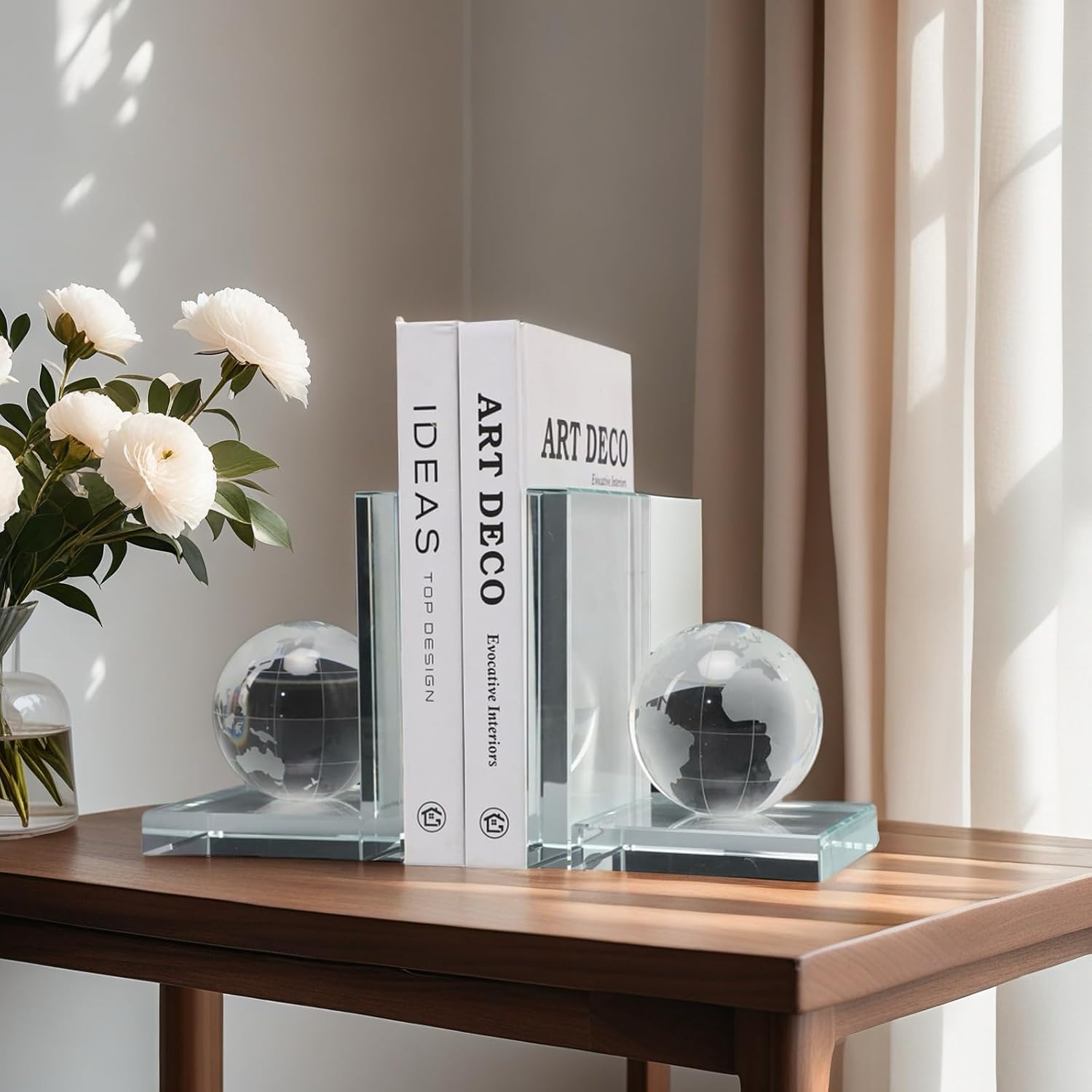 Elevate your home decor with these stunning Earth Crystal Statue Bookends. Crafted from elegant glass, these bookends add a touch of sophistication to any bookshelf or office desk. The unique crystal design captures the beauty of nature, creating a captivating focal point in any room. With their substantial weight, these bookends securely hold your books in place while providing a decorative accent. Measuring approximately 5.2 inches tall, they strike the perfect balance between form and function. Whether you're an avid reader or simply appreciate exquisite decor, these Earth Crystal Statue Bookends are a must-have addition to your space. Enhance your surroundings with the timeless charm of these decorative bookends. Set of 2.