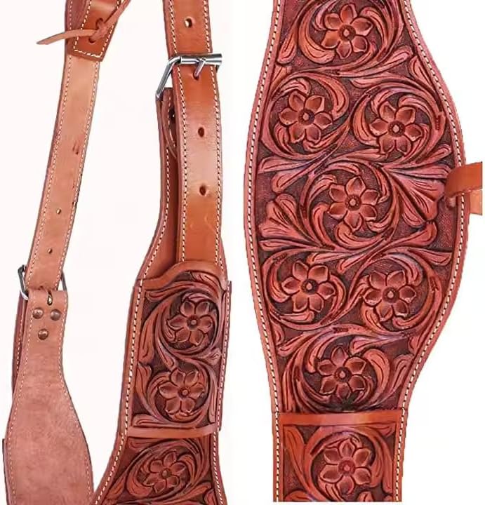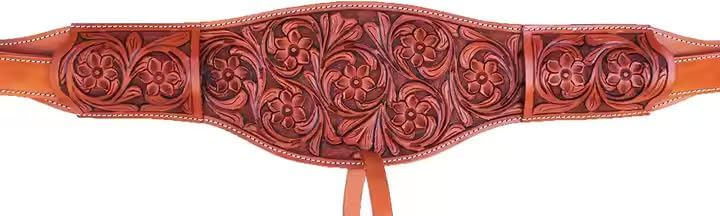 These beautiful all leather back cinches are a perfect addition to your tack collection and will fit most western back cinch billet straps. The colored leather will easily match any saddle to make your set complete. These back cinches features a leather sleeve to tuck your billet straps into to prevent any excess straps from hanging off of your horse. The rough out underside is soft and prevents pinching and chafing, even against sweat. Measurements: Color: As Per Picture. Length: 40" buckle to buckle Width: 2.75" with 2" buckles Connector Strap: 5"-9" (adjustable) 100% Natural Cowhide Leather Each back cinch is made with 100% natural cowhide leather. Stainless Steel Hardware All buckles and hardware are made with stainless steel. Billet Keepers Each back cinch will come with billet keeper pockets to insert your left over latigo straps. This will help to eliminate any flopping straps that could distract your horse. Soft Rough Out Underside The rough out underside is soft and prevents pinching and chafing, even against sweat.