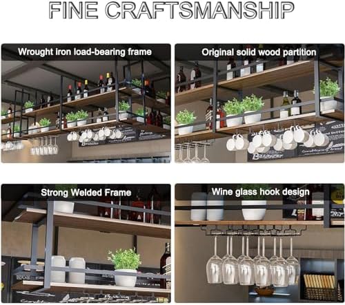 Enhance your space with our Rustic Industrial Ceiling Rack, a perfect blend of style and functionality. Crafted from high-quality iron and wood, this wine rack not only serves as an elegant storage solution but also adds a touch of sophistication to your living room, kitchen, café, or bar. Available in striking black and gold finishes, it complements a variety of decor themes while ensuring durability through its robust welded metal structure. With multiple sizes ranging from 80cm to 180cm, this versatile ceiling shelf creates ample storage space with its two-layer design, allowing you to display your favorite wines, glasses, or decorative items effortlessly. Imagine hosting friends for a dinner party, where your beautifully arranged wine bottles become a conversation starter, or setting up your café with an eye-catching display that draws customers in. Installation is simple with our expansion screw-in method, making it easy to mount on concrete ceilings. Whether you’re looking to optimize space in a cozy apartment or create a chic atmosphere in a bustling restaurant, this ceiling rack adapts to your needs. Please note that the product includes only the ceiling shelf; other items are for display purposes. While we strive for accuracy, actual colors may vary slightly due to monitor and lighting effects, and a slight measurement deviation of 1-2cm may occur. Elevate your space with our stylish ceiling rack—where function meets aesthetic appeal.
