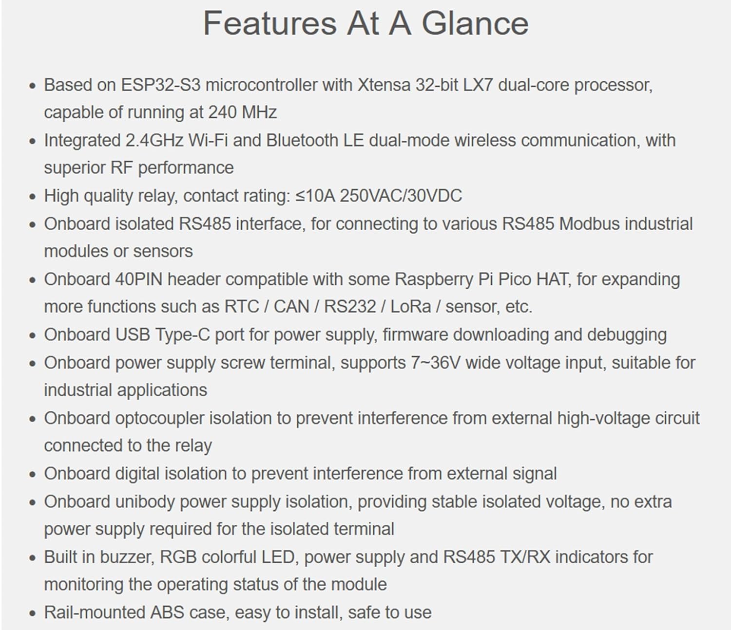 | Included Components | ESP32-S3-Relay-6CH Module x1 |