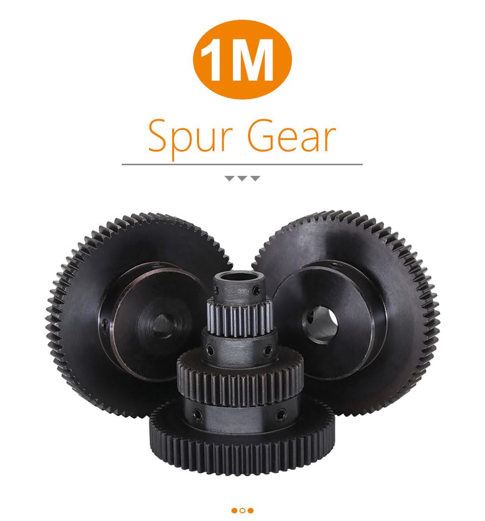 1. Not easy to wear, durable performance. This gear is a good industrial alternative accessory.2. Widely used in conveying, hardware, agricultural equipment, printing machinery, mechanical transmission and so on.3. The contact between the gears is firm to ensure the normal operation of the machine and good carrying capacity.Specification:1.Product Name:Spur Gear2.Module:1Module3.Teeth Number:1M-12T4.Material:SC45(Carbon Steel)5..Inner Bore :4/5/6/6.35/7 mm6.Inner Bore :Surface Treatment:Blackening7.Fixing screw:M4 x2 PcsNote:The gear is a carbon steel product, and there may be rust on the surface, but it will not affect the product efficacy and use. Please understand.