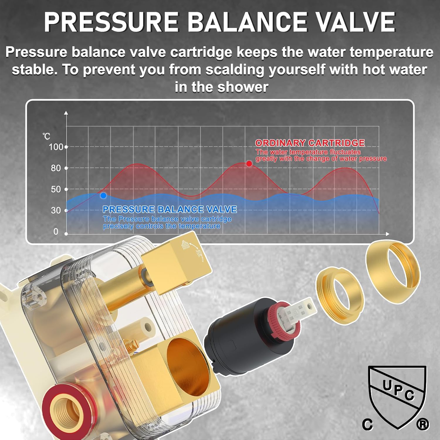 | Included Components | 12 Inch SUS 304 Stainless Steel Square Rainfall Shower Head, Brass Handheld Shower Head, Brass Shower Faucet Valve, Stainless Steel Shower Arm, 60 Inch Stainless Steel Shower Hose, Brass Shower Bracket. |