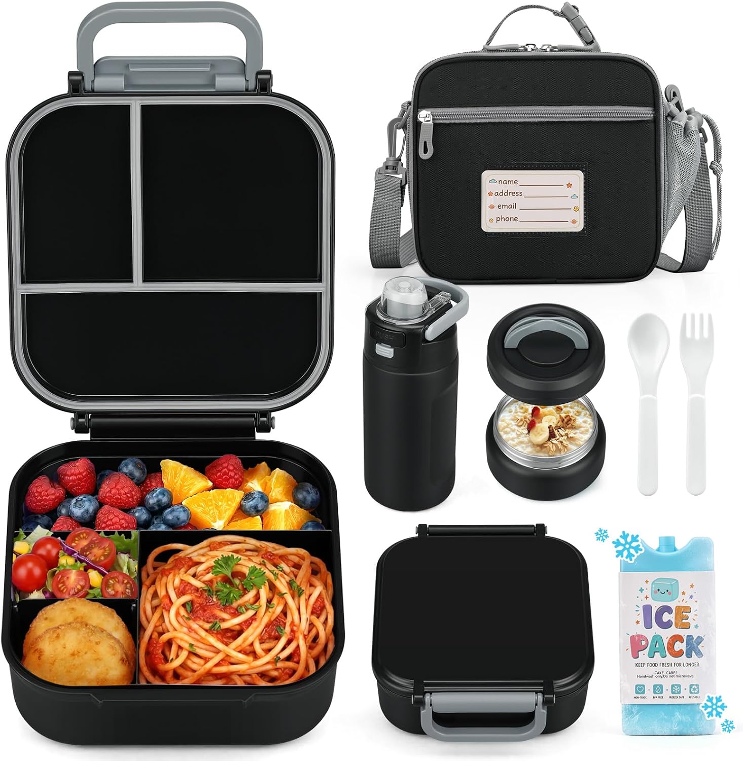 "Keep daily meals fresh, organized and mess-free with the complete Itslife All-In-One Lunch Box Set. Boasting a generous 42oz capacity (excluding soup thermos and water bottle), this lunch container offers ample space to prep full, balanced and nutritious meals for all-day satisfaction. Designed for busy daily routines, outdoor adventures, travel and everyday use, this all-in-one bento kit blends safety, convenience and practicality into a durable, long-lasting set. The 4-compartment leakproof bento box delivers ideal portion control, while preventing food spills and mixing for effortless meal packing—perfect for breakfast, lunch or quick snacks. Crafted with food-safe, BPA-free, non-toxic materials, this lunch set ensures safe daily food contact for long-term use. The included 7oz vacuum insulated soup thermos locks in heat for hours, ideal for warm soups, noodles, oatmeal and hearty stews. The 12oz water bottle is lightweight, ergonomically designed for easy gripping and simple cleaning, supporting consistent daily hydration. This full meal kit also includes a reusable ice pack to keep fruits, veggies, dairy and perishable snacks cool and fresh, plus a built-in fork and spoon set for seamless on-the-go use. Featuring a user-friendly easy-open design, the set withstands daily wear and tear for lasting durability. Its compact, lightweight build fits effortlessly into most backpacks and lunch bags. Perfect for daily commutes, daycare facilities, picnics, camping trips and travel, the Itslife Lunch Box Set provides everything needed for a streamlined, enjoyable dining experience. The sleek finish offers a versatile, modern look, making it a top practical choice for daily meal prep and outdoor dining."