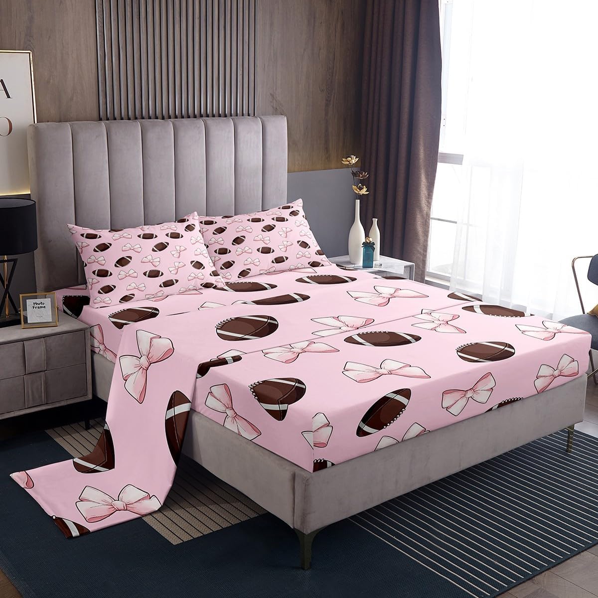 Our bed sheet is made of polyester fabric, lightweight and soft; stylish design is very suitable as room decoration for boys and girls; keep warm in winter and cool in summer; create a comfortable sleeping environment to make you fall asleep all night Range of size 1 twin fitted sheet 39 inch x 75 inch x 16 inch and 1 twin flat sheet 66 inch x 96 inch and 1 standard pillowcase 20 inch x 30 inch 1 full fitted sheet 54 inch x 75 inch x 16 inch and 1 full flat sheet 81 inch x 96 inch and 2 standard pillowcase 20 inch x 30 inch 1 queen fitted sheet 60 inch x 80 inch x 16 inch and 1 queen flat sheet 90 inch x 102 inch and 2 standard pillowcase 20 inch x 30 inch 1 king fitted sheet 78 inch x 80 inch x 16 inch and 1 king flat sheet 90 inch x 106 inch and 2 standard pillowcase 20 inch x 36 inch