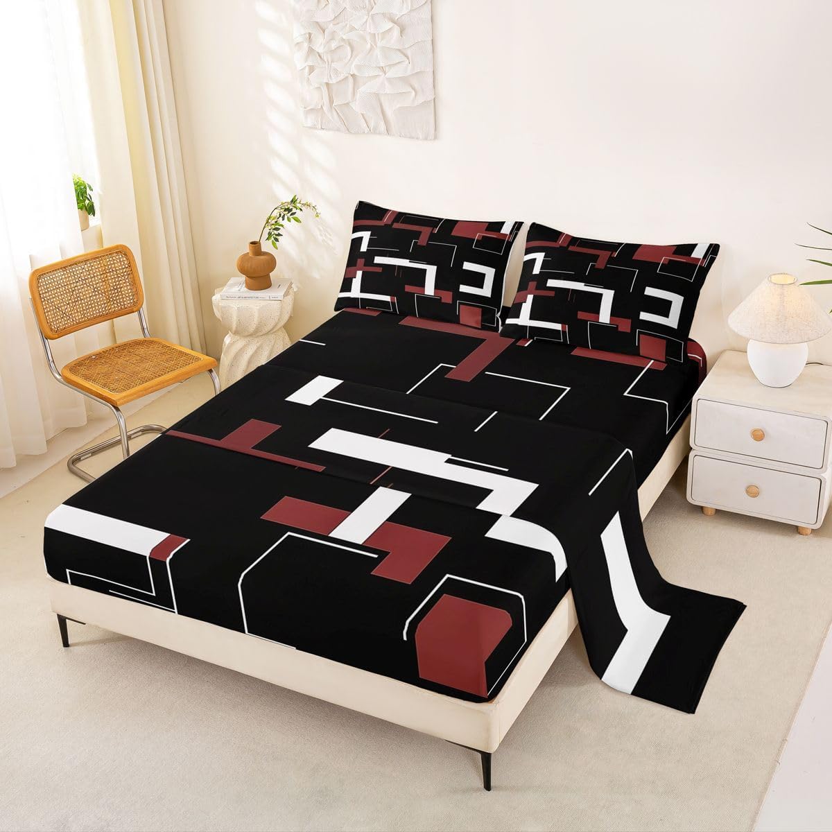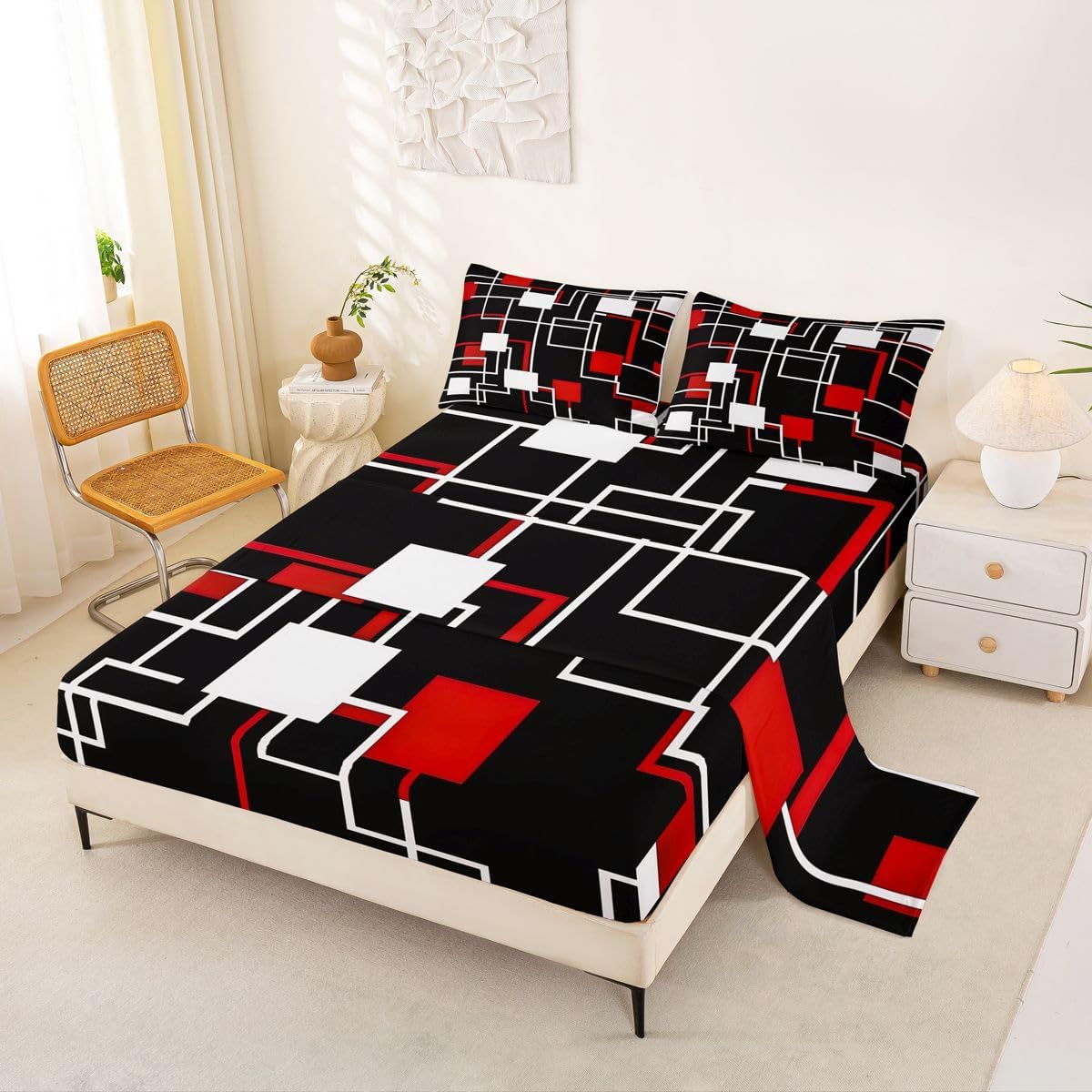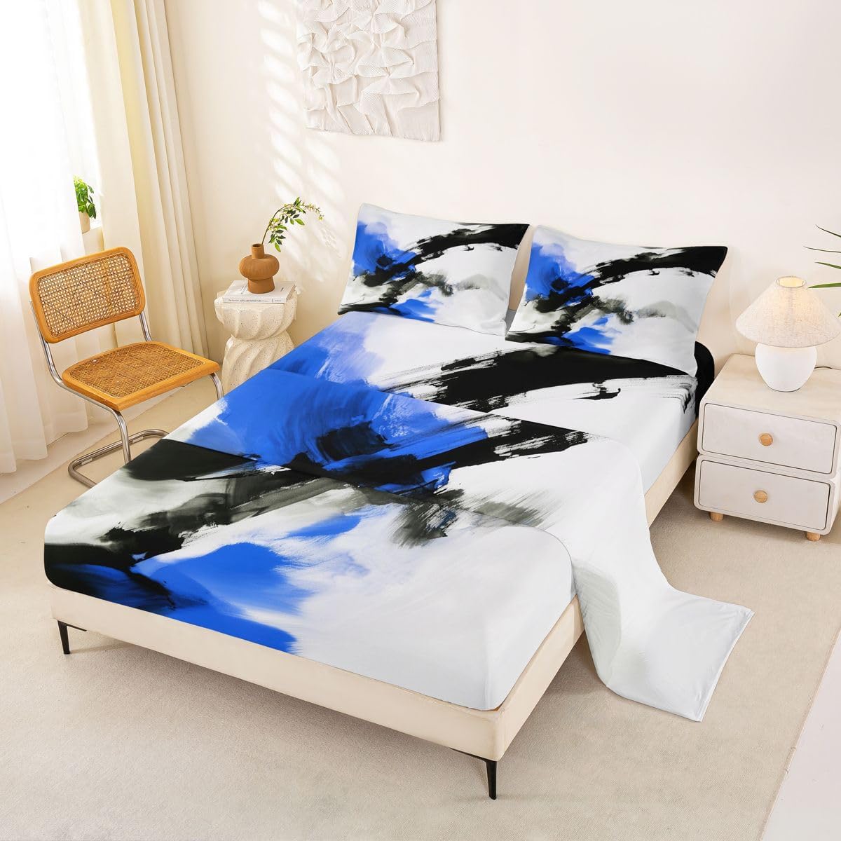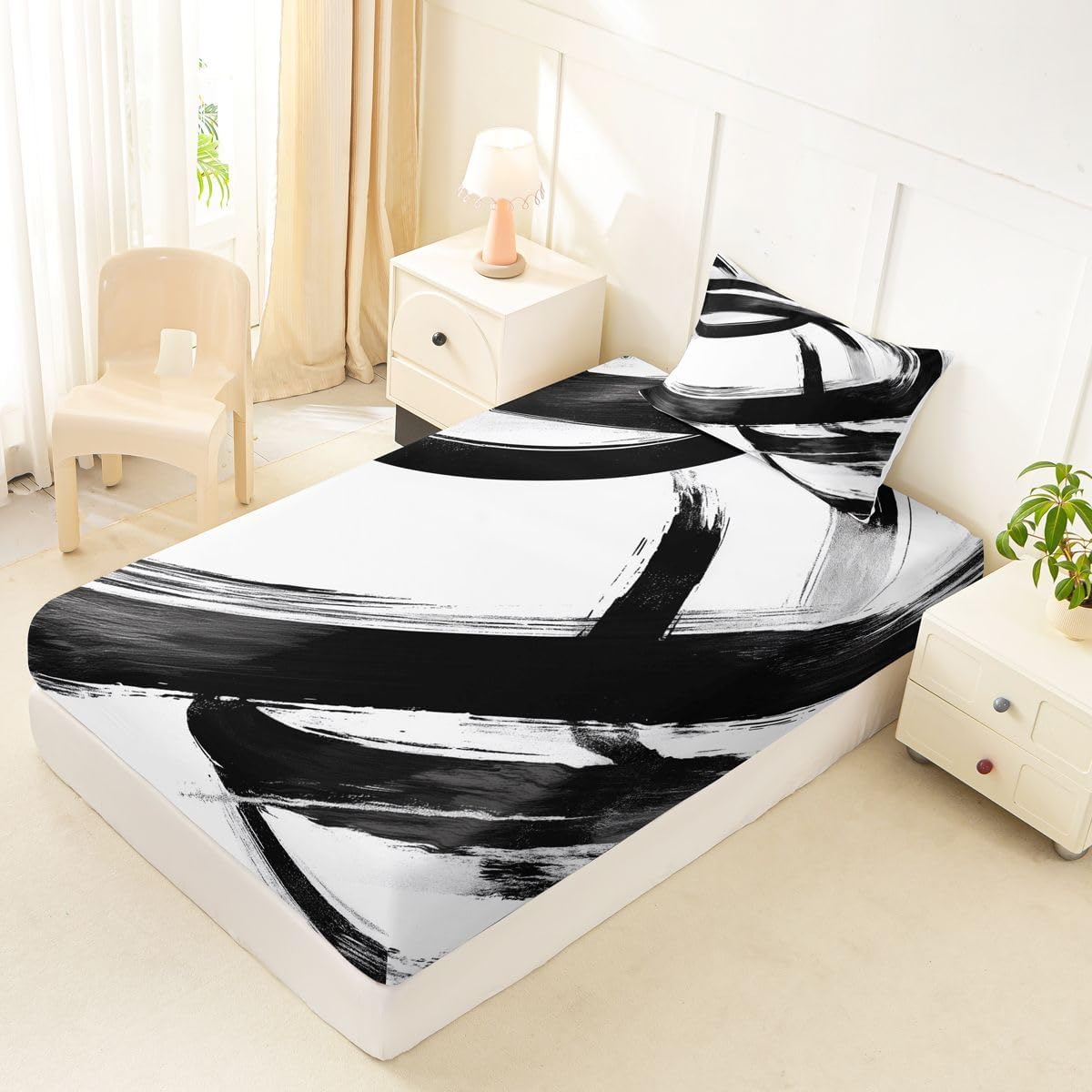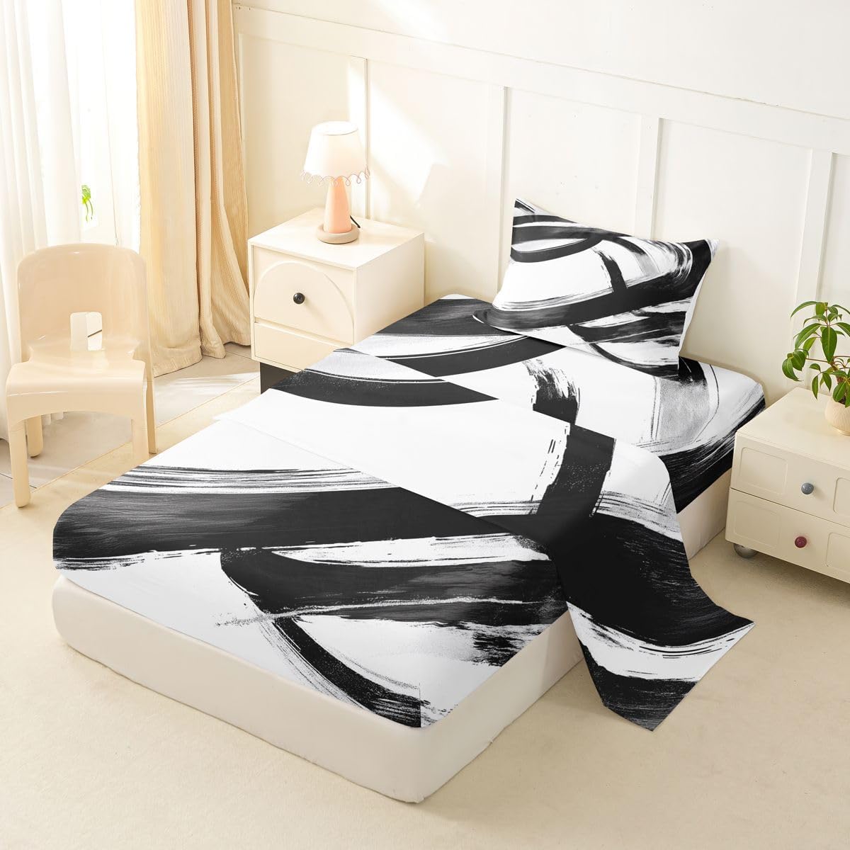 Our bed sheet is made of polyester fabric, lightweight and soft; stylish design is very suitable as room decoration for boys and girls; keep warm in winter and cool in summer; create a comfortable sleeping environment to make you fall asleep all night Range of size 1 twin fitted sheet 39 inch x 75 inch x 16 inch and 1 twin flat sheet 66 inch x 96 inch and 1 standard pillowcase 20 inch x 30 inch 1 full fitted sheet 54 inch x 75 inch x 16 inch and 1 full flat sheet 81 inch x 96 inch and 2 standard pillowcase 20 inch x 30 inch 1 queen fitted sheet 60 inch x 80 inch x 16 inch and 1 queen flat sheet 90 inch x 102 inch and 2 standard pillowcase 20 inch x 30 inch 1 king fitted sheet 78 inch x 80 inch x 16 inch and 1 king flat sheet 90 inch x 106 inch and 2 standard pillowcase 20 inch x 36 inch