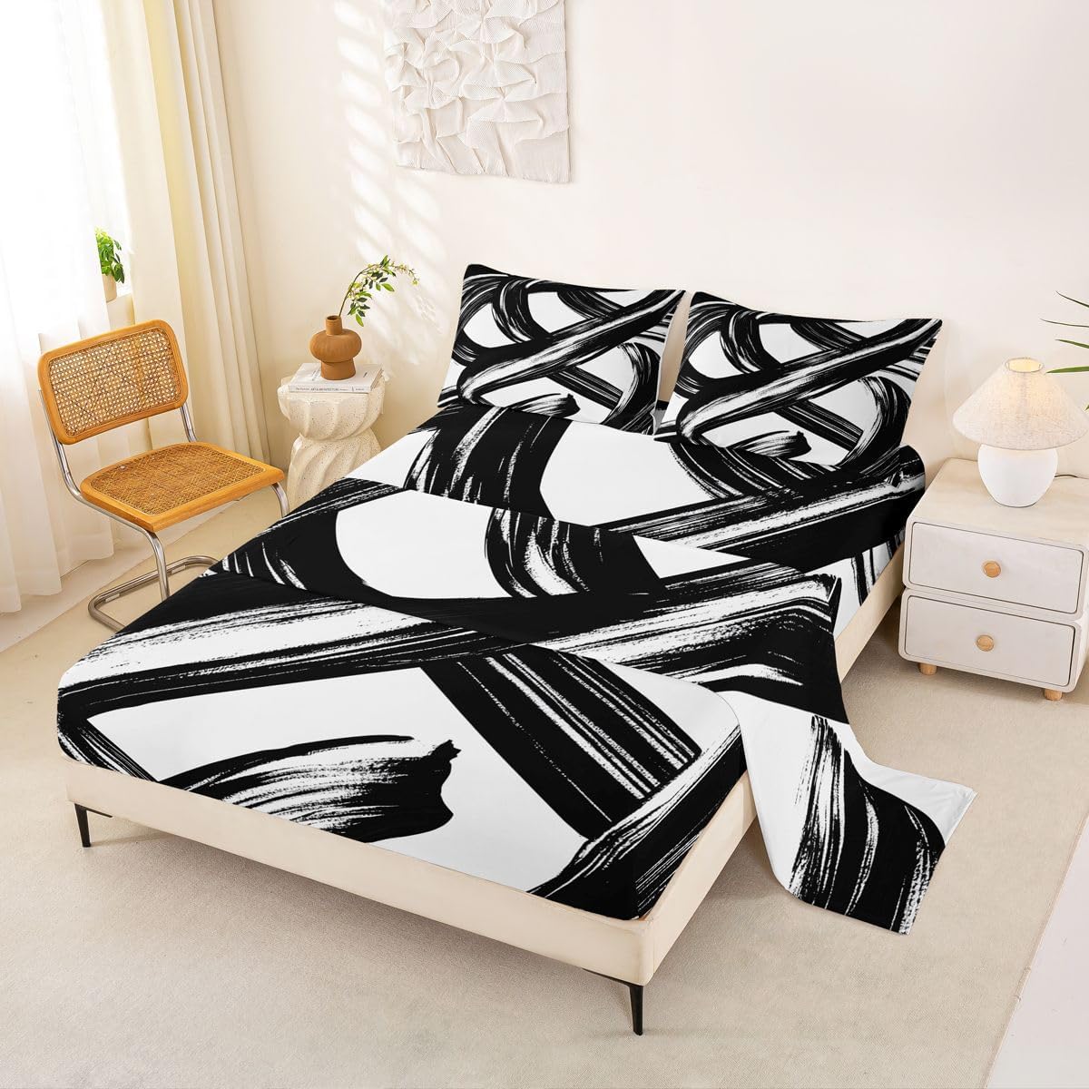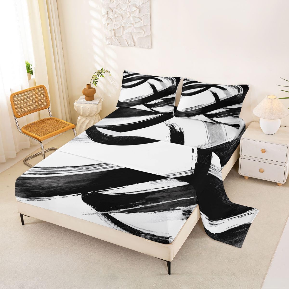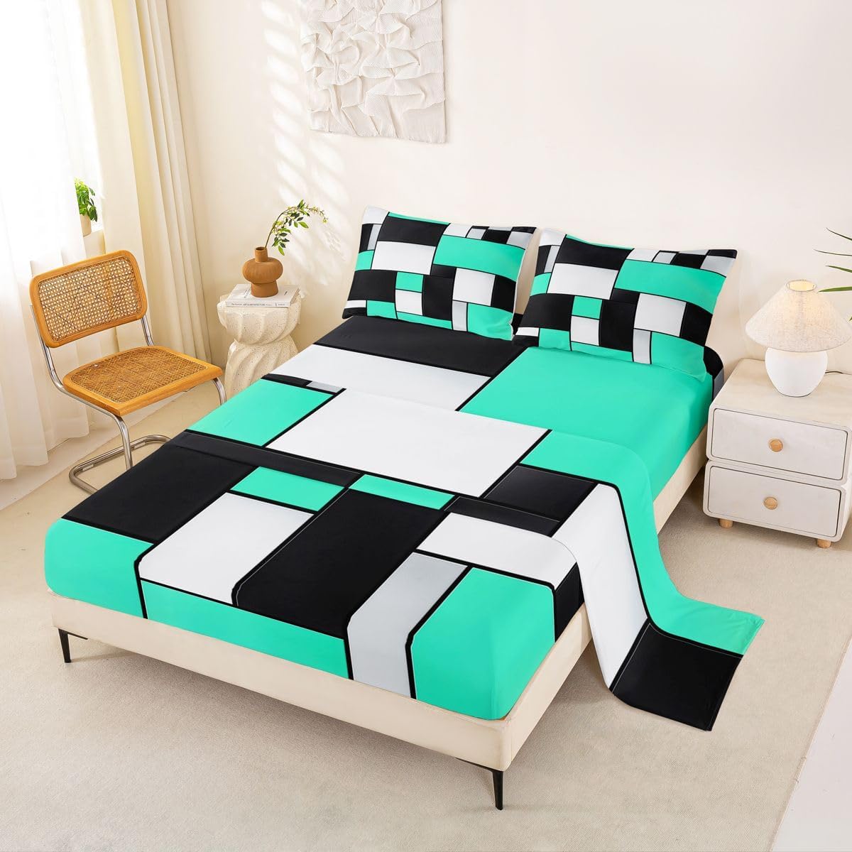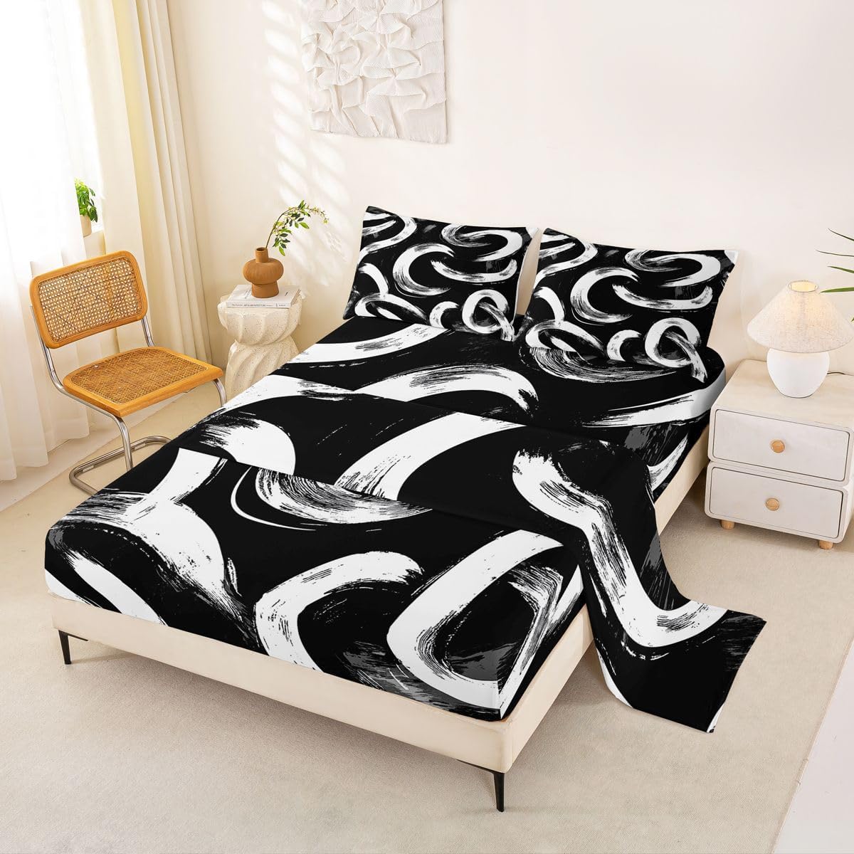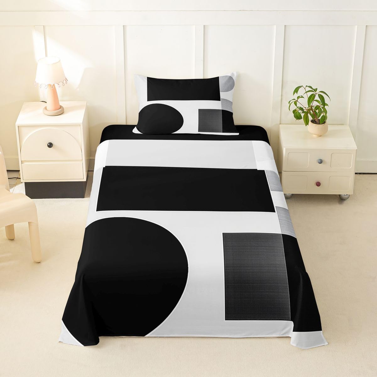 Our bed sheet is made of polyester fabric, lightweight and soft; stylish design is very suitable as room decoration for boys and girls; keep warm in winter and cool in summer; create a comfortable sleeping environment to make you fall asleep all night Range of size 1 twin fitted sheet 39 inch x 75 inch x 16 inch and 1 twin flat sheet 66 inch x 96 inch and 1 standard pillowcase 20 inch x 30 inch 1 full fitted sheet 54 inch x 75 inch x 16 inch and 1 full flat sheet 81 inch x 96 inch and 2 standard pillowcase 20 inch x 30 inch 1 queen fitted sheet 60 inch x 80 inch x 16 inch and 1 queen flat sheet 90 inch x 102 inch and 2 standard pillowcase 20 inch x 30 inch 1 king fitted sheet 78 inch x 80 inch x 16 inch and 1 king flat sheet 90 inch x 106 inch and 2 standard pillowcase 20 inch x 36 inch