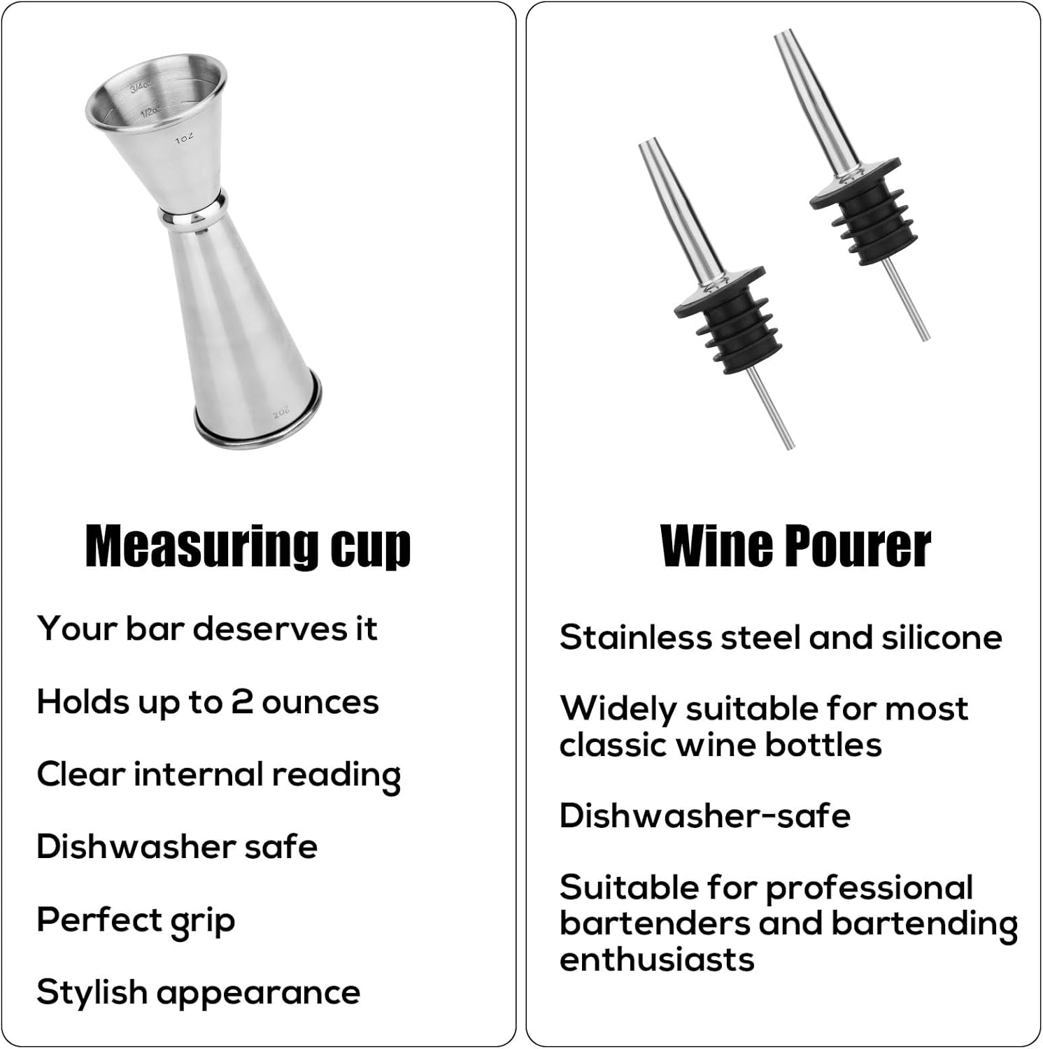 | Included Components | Jigger, Pourers |