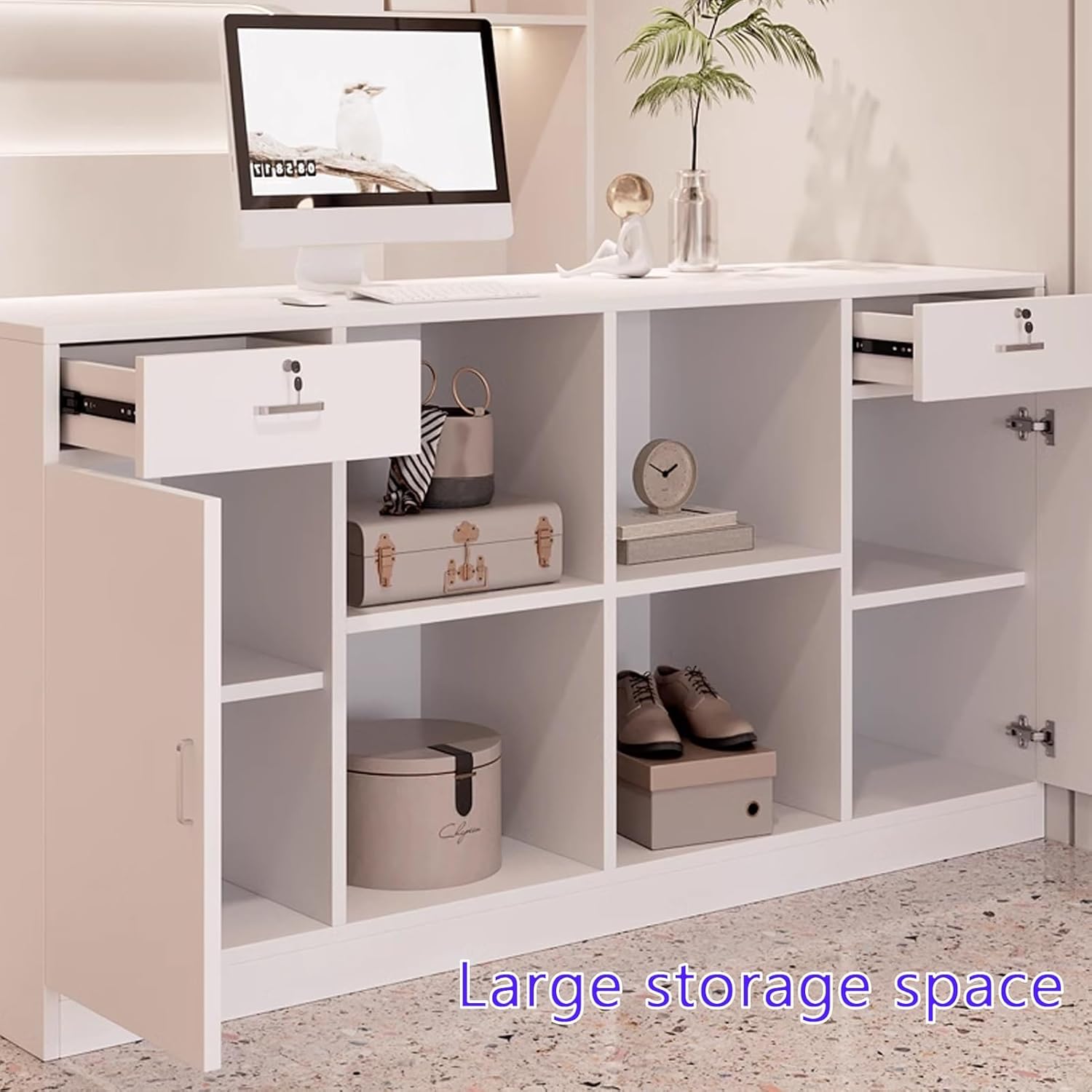 The desktop has holes, which makes it easier to use and hides messy wires.The door opening of JKGHK retail counter adopts a hardware silent hinge design, which makes the door open silently.The widened silent and smooth guide rails make the track smoother and quieter, and can be pulled out and prevented from falling off at will.The counter table adopts stable load-bearing floor-standing cabinet feet, which are not easy to shake under load and prevent dirt and moisture.Specifications:Color: Black , Natural , WhiteMaterial: WoodInstallation or not: YesOverall Dimensions: 80/100/120×40/60×100cm / 31.4/39.3/47.2×15.7/23.6×39.3inNote:1. There are only Reception Desk, other products are shooting props;2. Note: Due to the particularity of the furniture, there will be slight errors in the finished product, which is normal. The data is for reference only and must be based on the actual product. We hope for your understanding!3. While we display colors as accurately as possible, due to differences in computer monitors, colors may vary.
