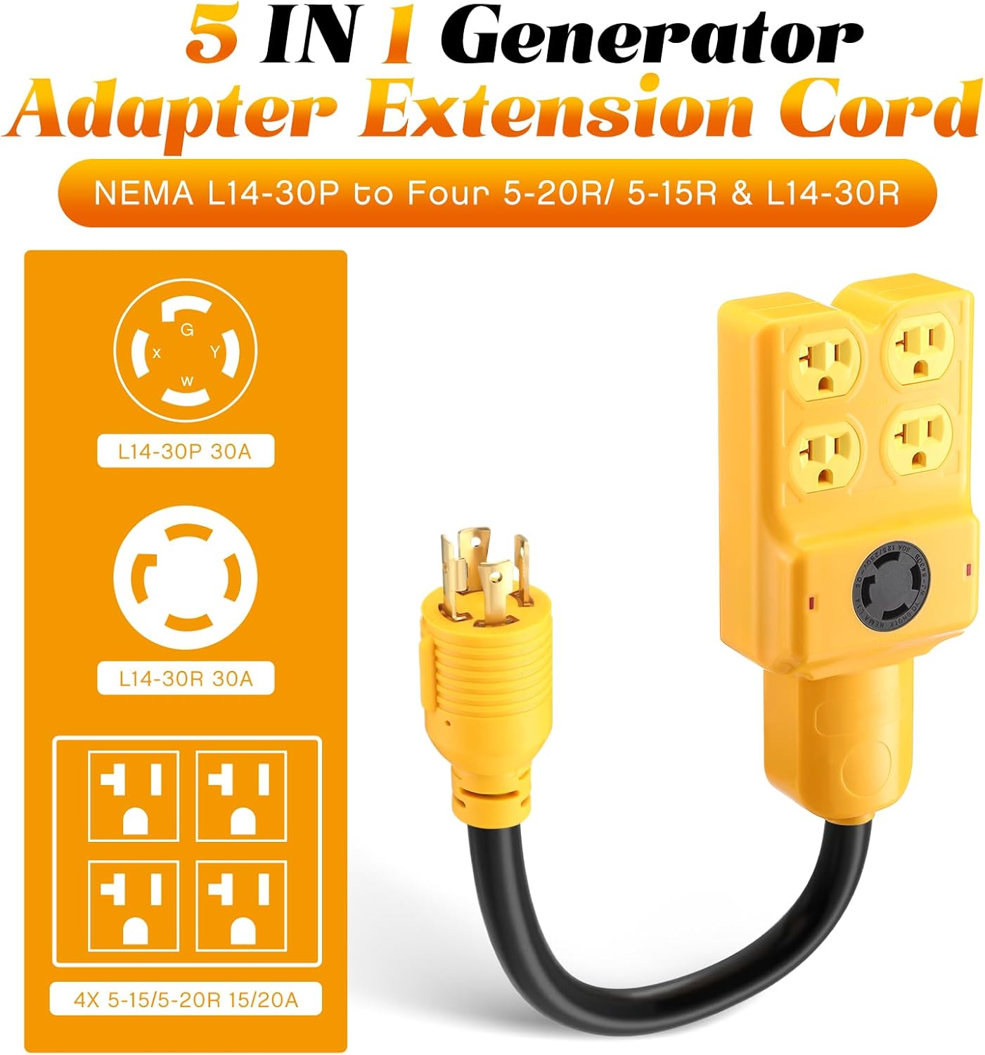 Features: Compact and portable: Compact 1.5 ft cord length ensures easy storage and portability, making it convenient for travel and emergency situations. Wide compatibility: Compatible with generator and household appliances, offering a versatile solution for both residential and commercial use. Specifications: Color: yellow, black Size: cord length: 1.5 ft Package includes: 1 x Generator adapter extension cord Notes: Manual measurement, please allow slight errors on size. The color may exist a slight difference due to different screen displays.