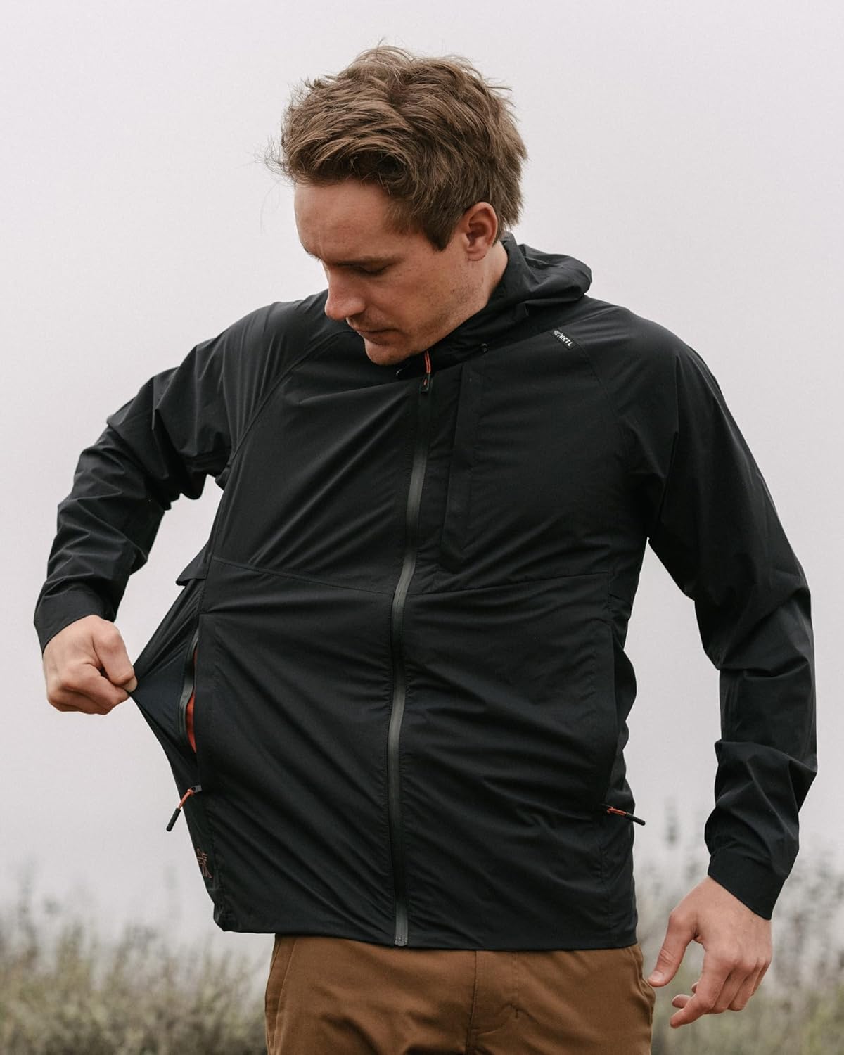 Adventure awaits, rain or shine. Ever wanted a rain jacket that doesn’t make you look like a walking trash bag? Meet the Bodbrella! Crafted from 2.5 layer nylon, it balances breathability, packability, and freedom of movement. With a DWR 10K waterproof rating, it laughs in the face of rain for 1-2 hours while staying breathable at 10K. Perfect for mountain adventurers or savvy travelers, it’s loaded with features: two hand zippers, a chest pocket that doubles as a stuff sack, adjustable hood, and a waist cinch cord for the perfect fit. *Note: We designed the Bodbrella to be a slim fitting rain shell. If you plan to layer underneath it, we recommend sizing up.