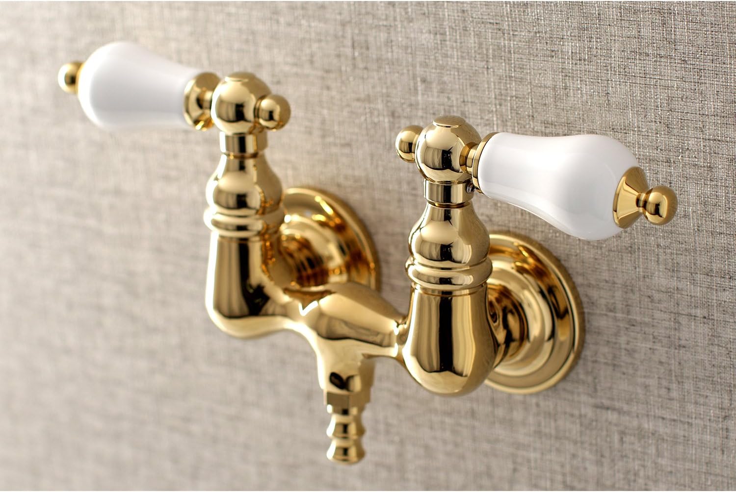 Wall mount clawfoot tub faucets are the perfect fixture to add decorative flair within your bathroom because of their unique architectural elements. With vintage opulence, this will complete your refined bathroom decorum with the help of its premium polished brass finish. The solid brass construction also makes for a heavy, quality made product.