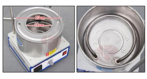 Description: 1. Model: DF-101S 2. Voltage: 220V / 50Hz 3. Stirring capacity: 2000ml 4. Stirring speed: 0 - 2600rpm 5. Temperature range: RT ~ 400℃ 6. Working size: φ230 * 110mm(deep) 7. Weight: appr. 6.5kg 8. Can be water bath. oil bath stirring Feature: 1. Digital constant temperature stirring, can use water bath heating stirring or oil bath heating stirring. 2. Using the collector heating method, the heated container is completely in a strong heat radiation. 3. Digital temperature control heating up fast. 4. It is the ideal tool for laboratory.