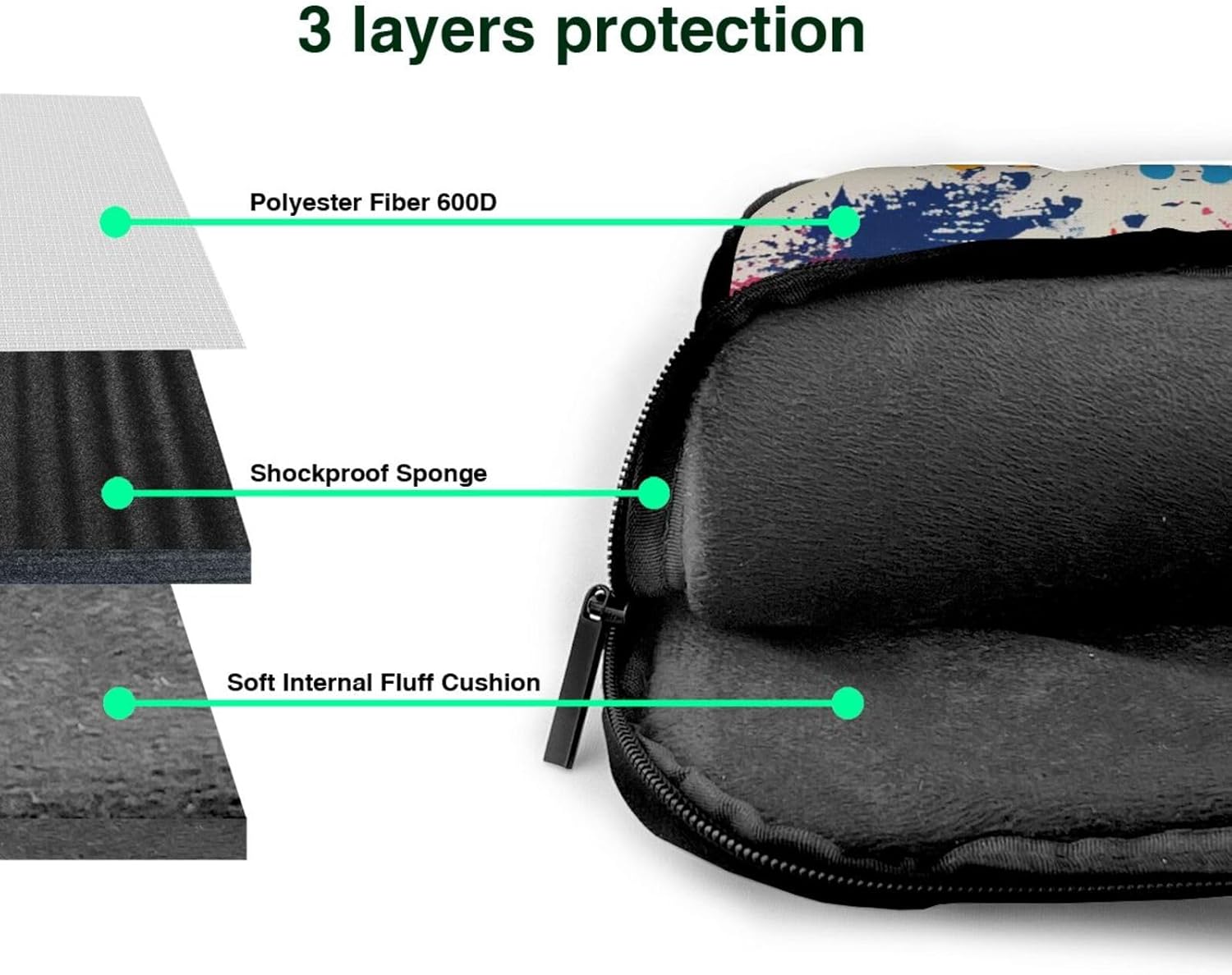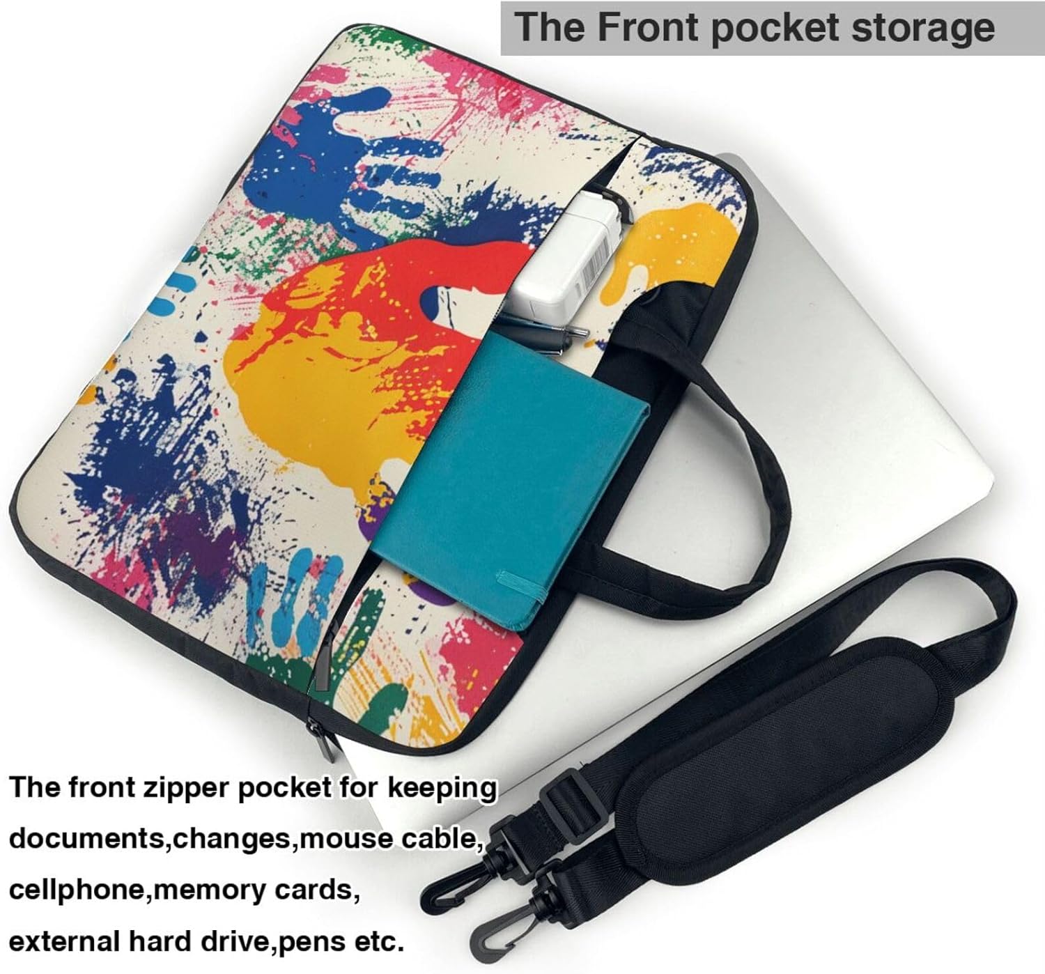 This ultra-thin portable laptop shoulder bag is designed for both men and women. It is made of high quality 600D polyester oxford fabric with a polyester foam filling layer and soft fabric lining, providing excellent shock absorption and protection for your laptop. The spacious interior provides a large capacity, so you can easily store your laptop, mouse, cables, power bank, pens and other accessories. The top double zippers ensure smooth sliding and convenient access. The removable padded shoulder strap with a length of 18 cm and a maximum length of 112 cm allows you to carry it comfortably on your shoulder or across the body. When not in use, the retractable top handle allows you to carry it alone or put it in your favorite bag. The bag also comes with a luggage strap on the back, making it suitable for business trips. With its fashionable design and special pattern, this laptop tote bag will make you different. The lining of the laptop bag for school office provides excellent protection from scratches. It is very suitable for carrying your laptop when going out. There are large pockets on both sides of the bag to hide the handles and hold the mouse, cables, power bank, pens and other accessories. To keep the bag in good condition, it is recommended to wash hand wash and avoid bleaching.