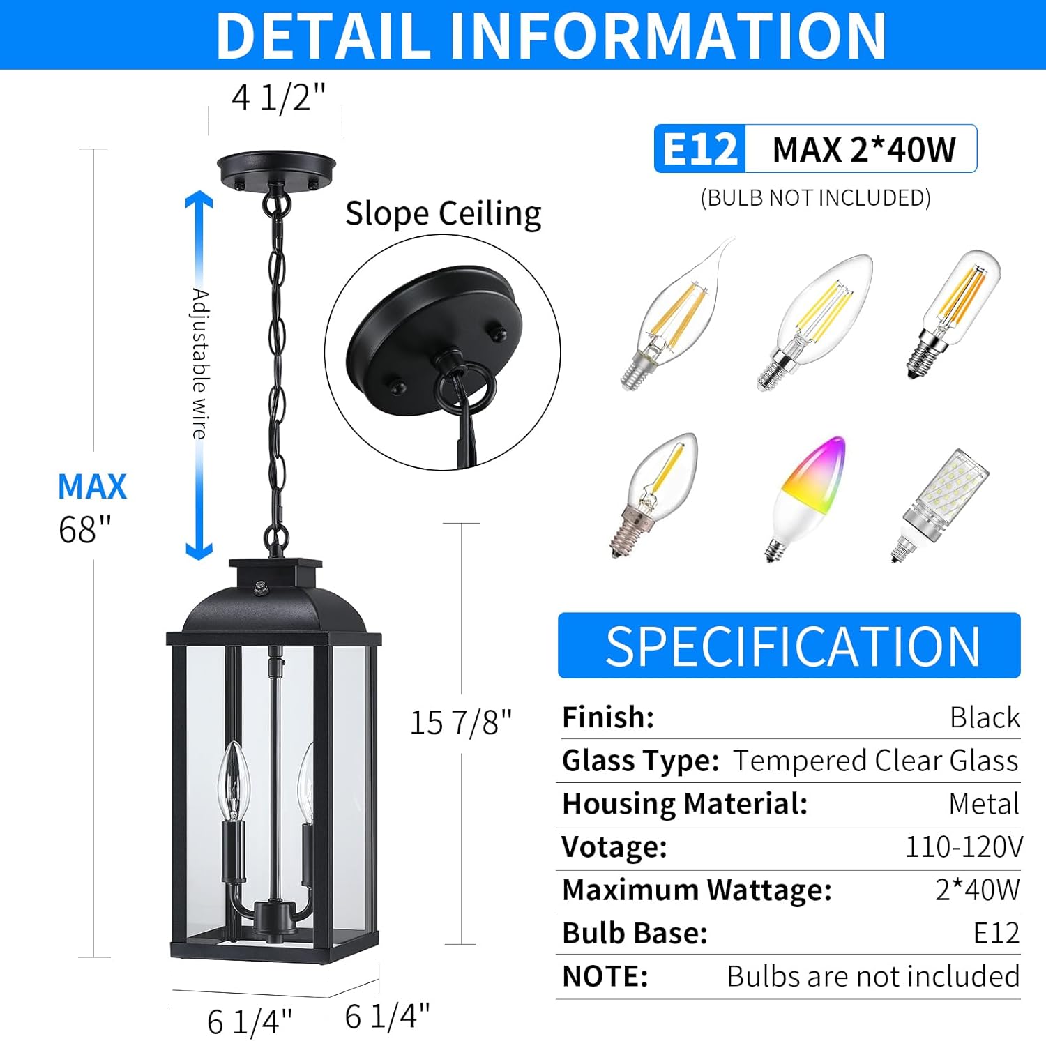| Shade Material | Tempered Clear Glass |