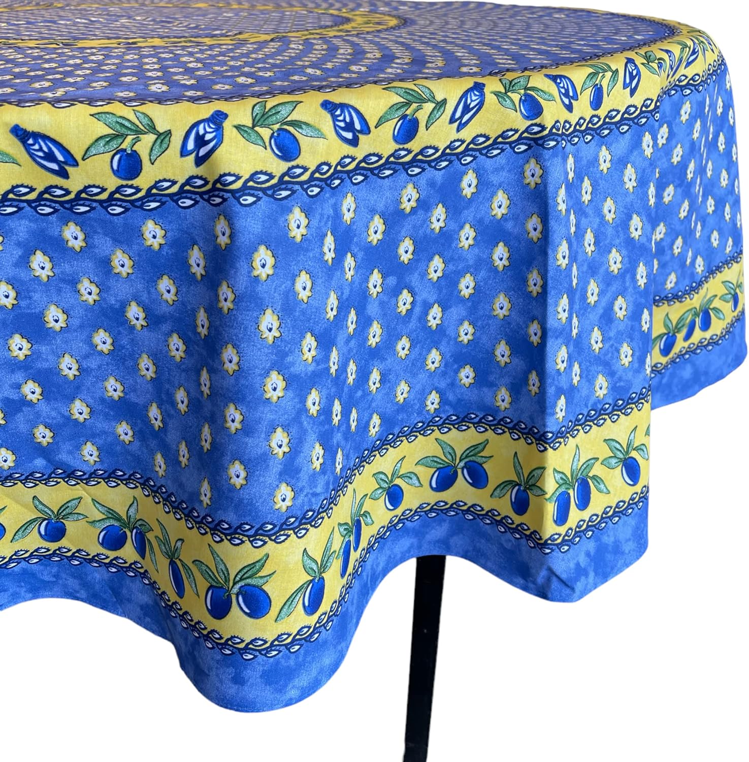 Le Cluny, Monaco Blue French Coated Cotton Tablecloth, 70 Inches Round