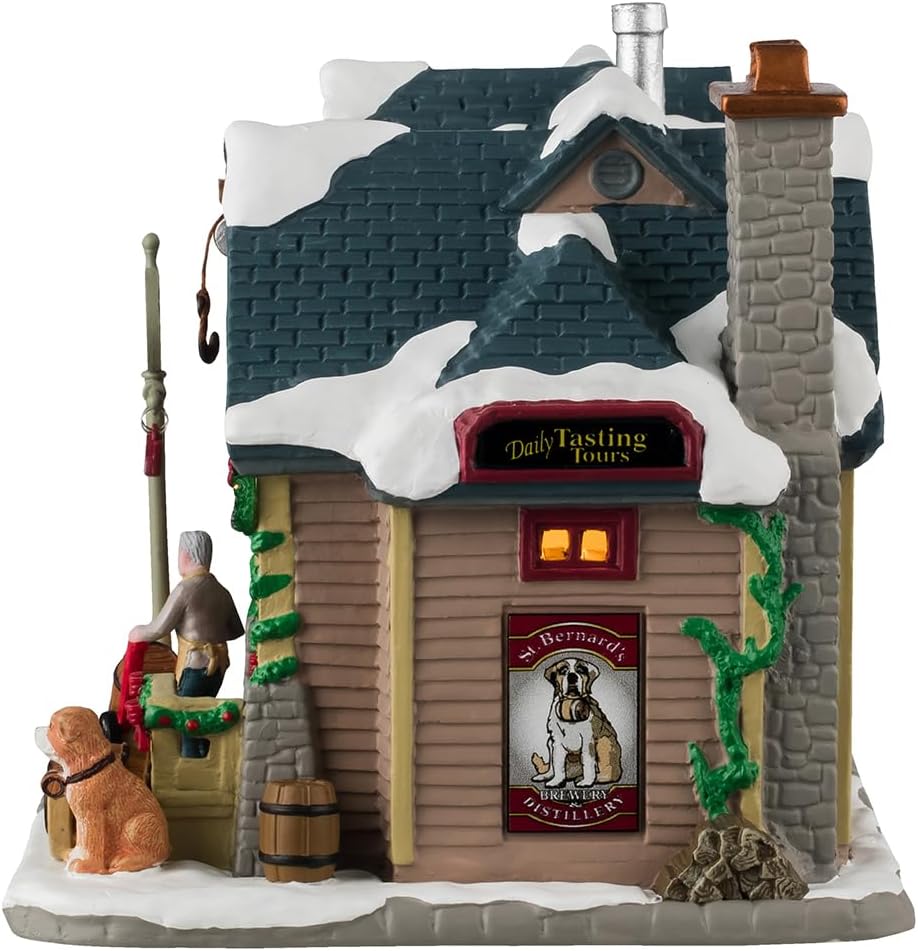 Discover the rustic charm of 'St. Bernard's Brewery and Distillery,' a haven for connoisseurs of aged brandy and ale. Stop by for a daily tasting tour and indulge in a world of rich flavors and unique craftsmanship. Our lovely dog and sweet artisan will give you a warm welcome into this picturesque refuge that captures the warmth of spirits and companionship.