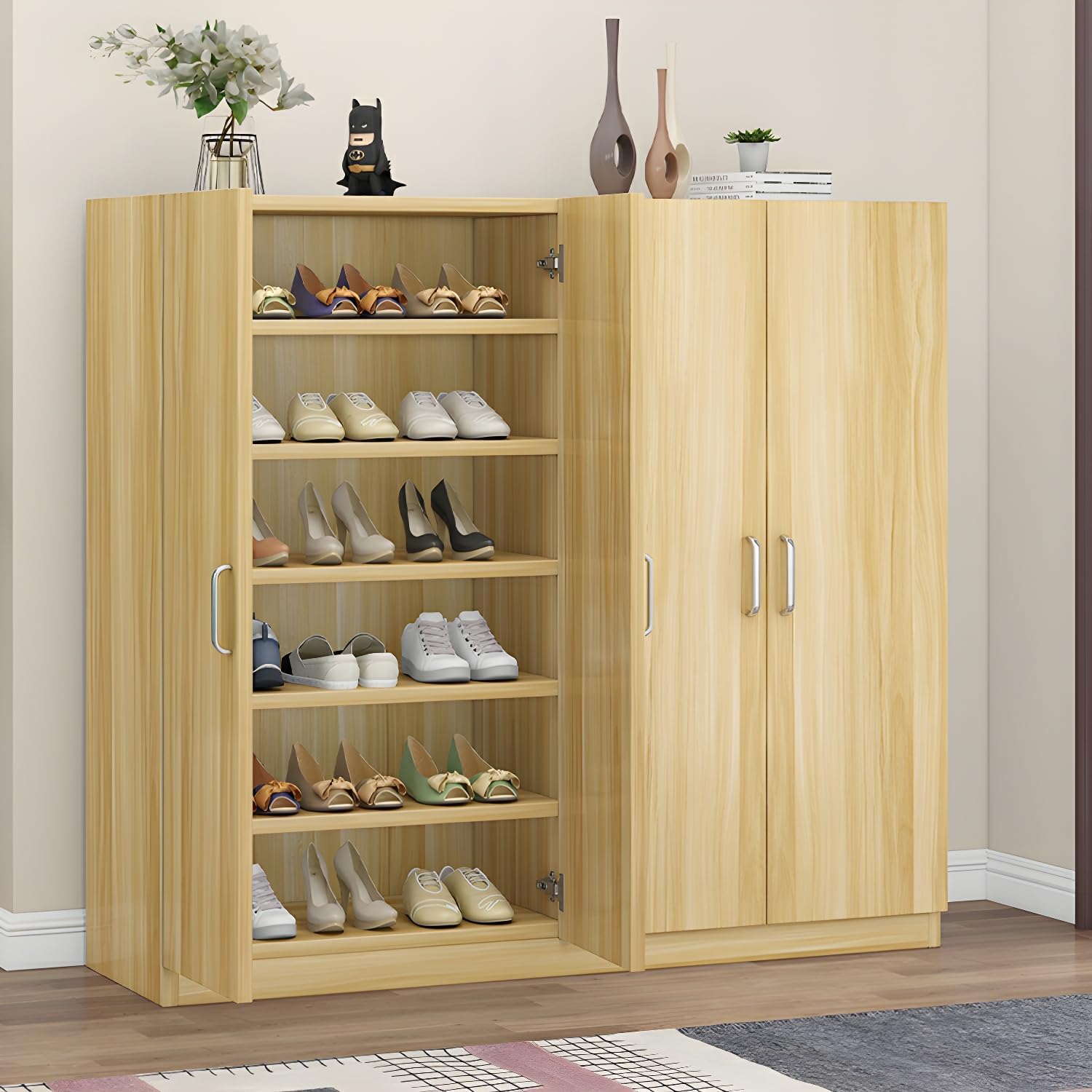 ✦✦Specifications ✦Information Category: Shoe Storage Cabinet Usage: Living Room, Bed, Entryway, Hotel, Hallway........ Style: Modern / Creative / Simple ✦Dimensions Shoe Shelves: 35"L x 13"W x 71"H ✦What's Included Number of Items Included: 1 Piece Assembly Tool: Yes Instruction Manual: Yes ✦Material and Colour Material: Wood Color: Light Walnut ✦Features Outdoor Use: No Doors Included: Yes Drawers Included: Drawers Not Included Closed Back: yes Adjustable Shelves: Adjustable Welcome to visit our store and buy our special designed and good quality products. If you have any questions about our products and service, please feel free to contact and we will always be here to assist.