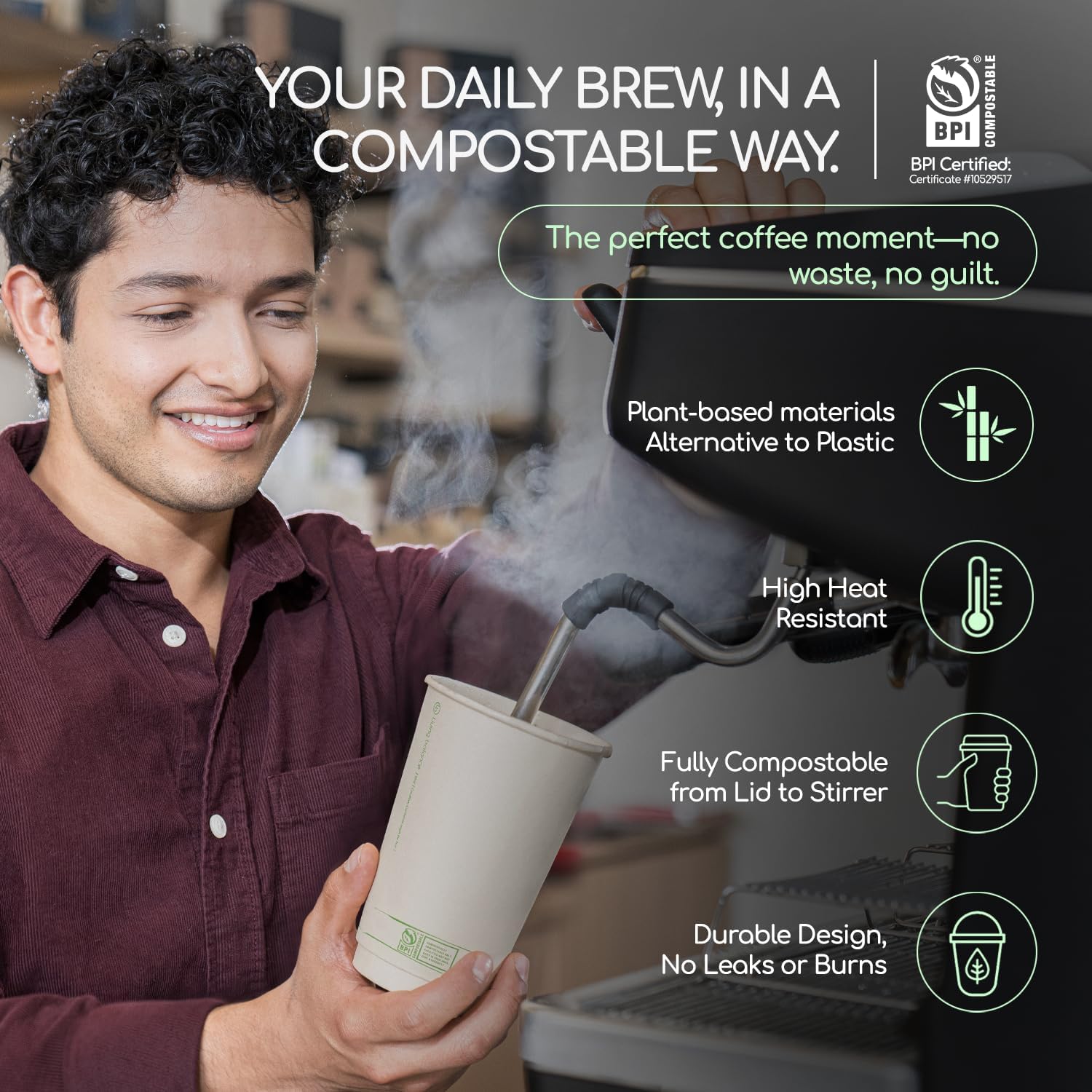 | Included Components | Compostable Cups, Compostable Lids, Compostable Stirrers, Integrated Sleeves |