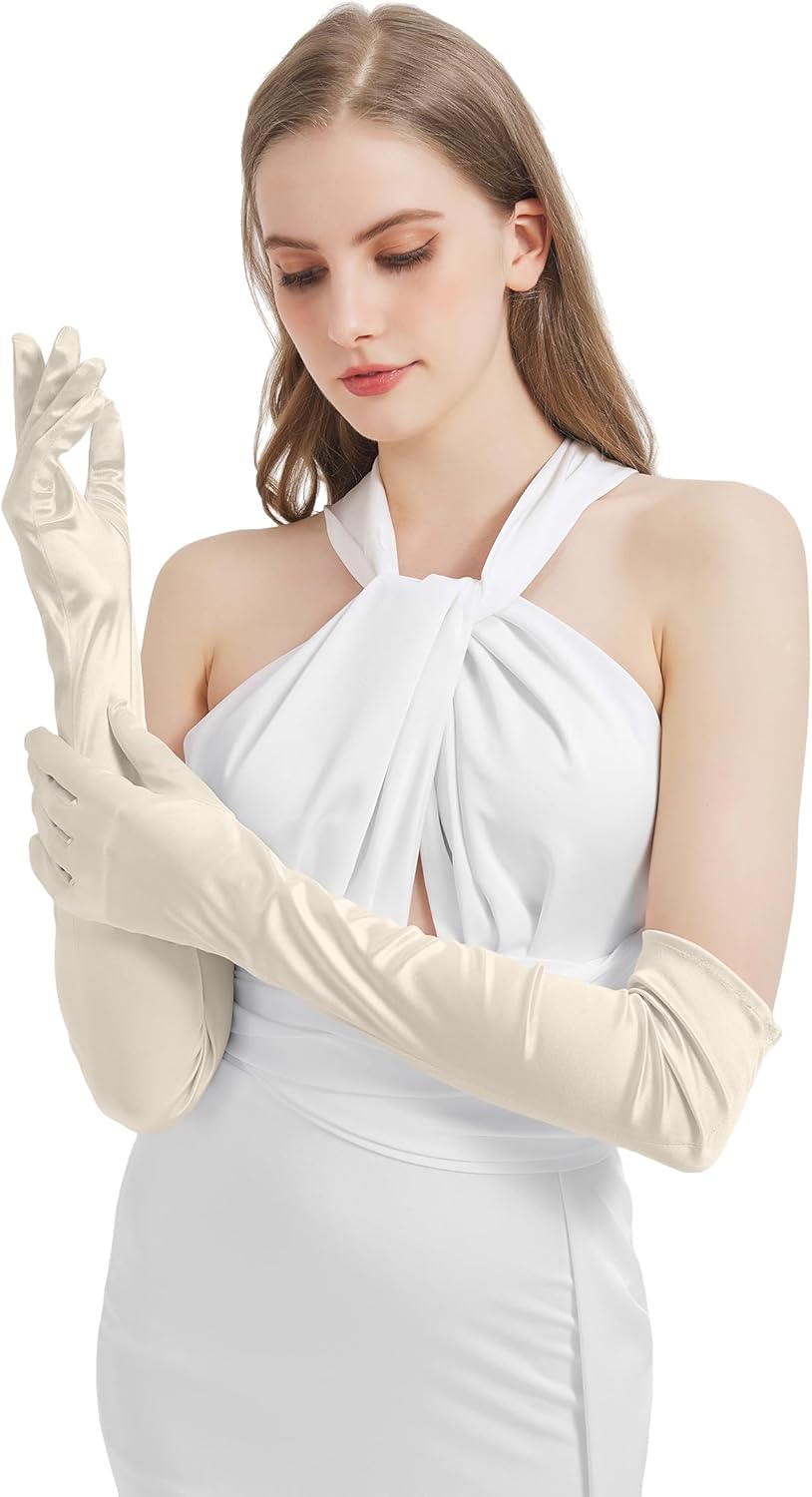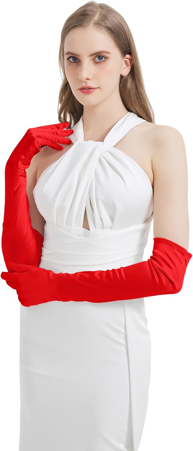 Long Gloves Costume Women Long Satin Opera Gloves Elbow Length Halloween Cosplay 1920s Gatsby Evening Party Dress Up