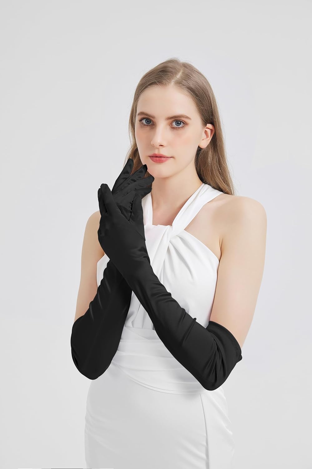 • [Enhance Your Look with Elegance] No matter the event, these long black satin gloves will elevate your ensemble with a touch of sophistication. They are the perfect accessory for a wide range of looks, from a wedding dress to a graceful opera or evening gown. Designed to combine both style and comfort, these long black gloves women offer both function and fashion, making them a must-have in your accessory collection.