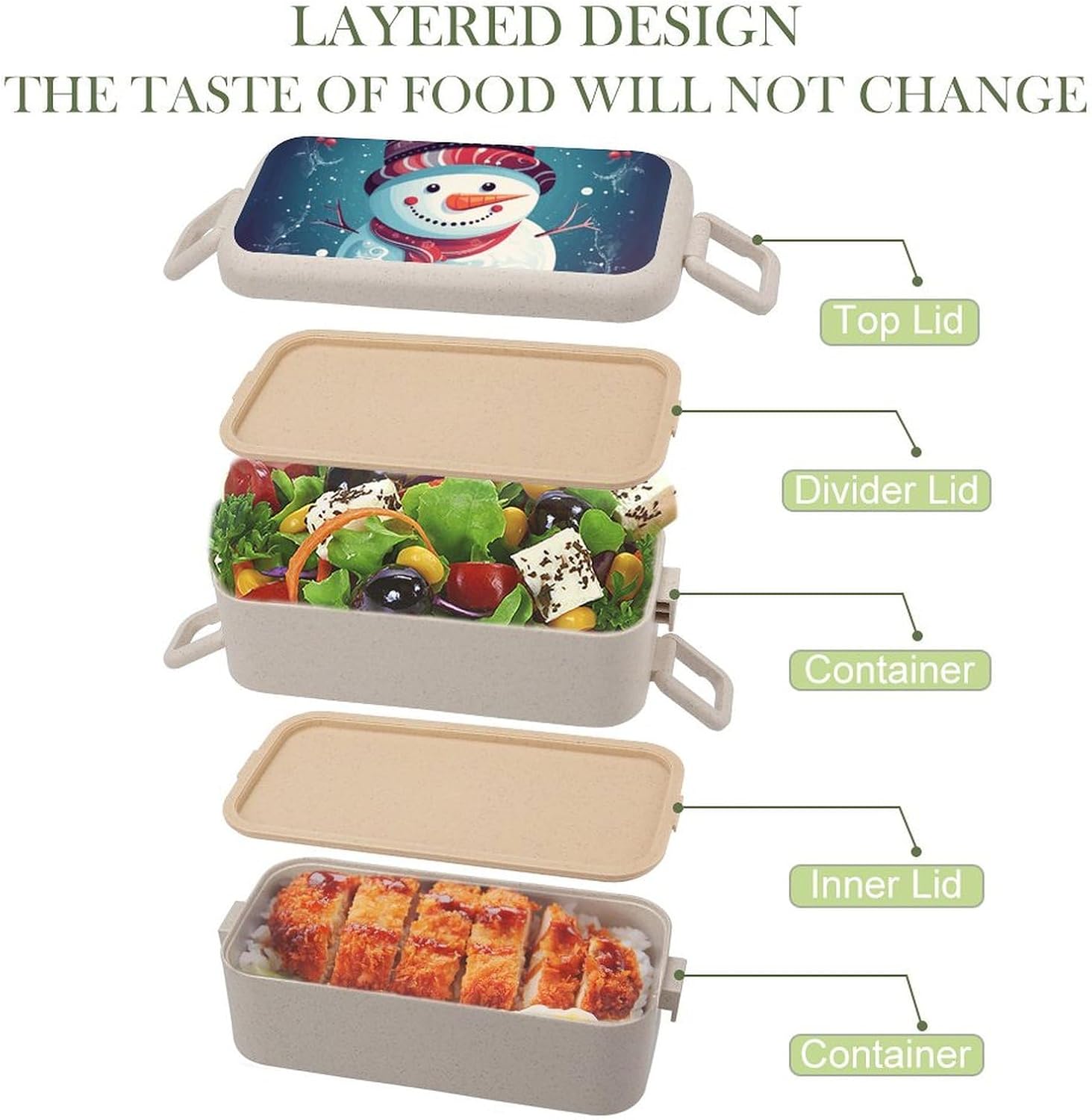 Fruit lunch box The food container is made of selected wheat fiber material,which will not emit other odors due to high temperature.It is a good helper for your daily life.The Snowman And Baubles printed food container adopts a partition design,which can separate different types of food,maintain the original flavor of the food,and plan your meal time reasonably.Integrated lunch box Small size and light texture,it will not feel bulky when put in a handbag or backpack during commuting.Portable lunch box The sealed design can reduce the possibility of accidental food spillage and odor escape,providing convenience for your dining.Travel snack box In addition to accommodating staple foods and side dishes,the large capacity can also be used to place other foods such as fruits and vegetables.Bento box set Washable and reusable.