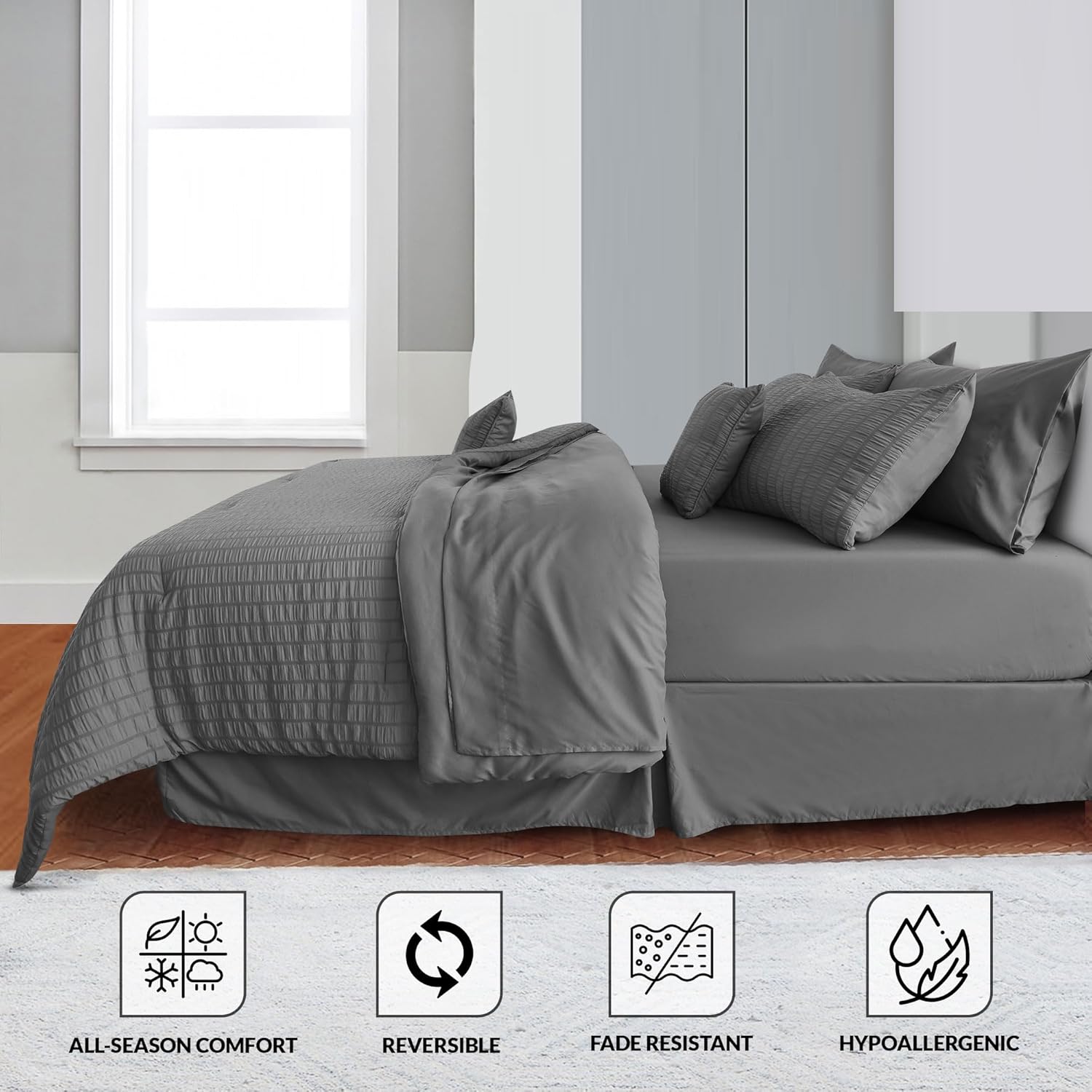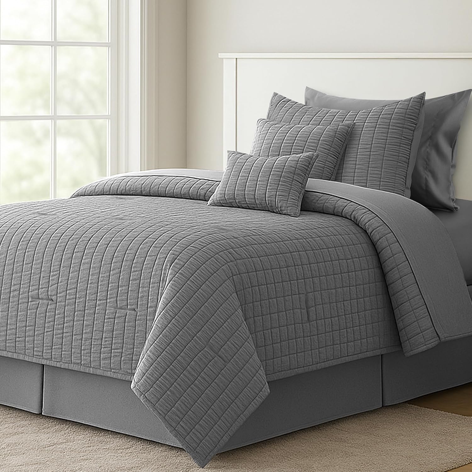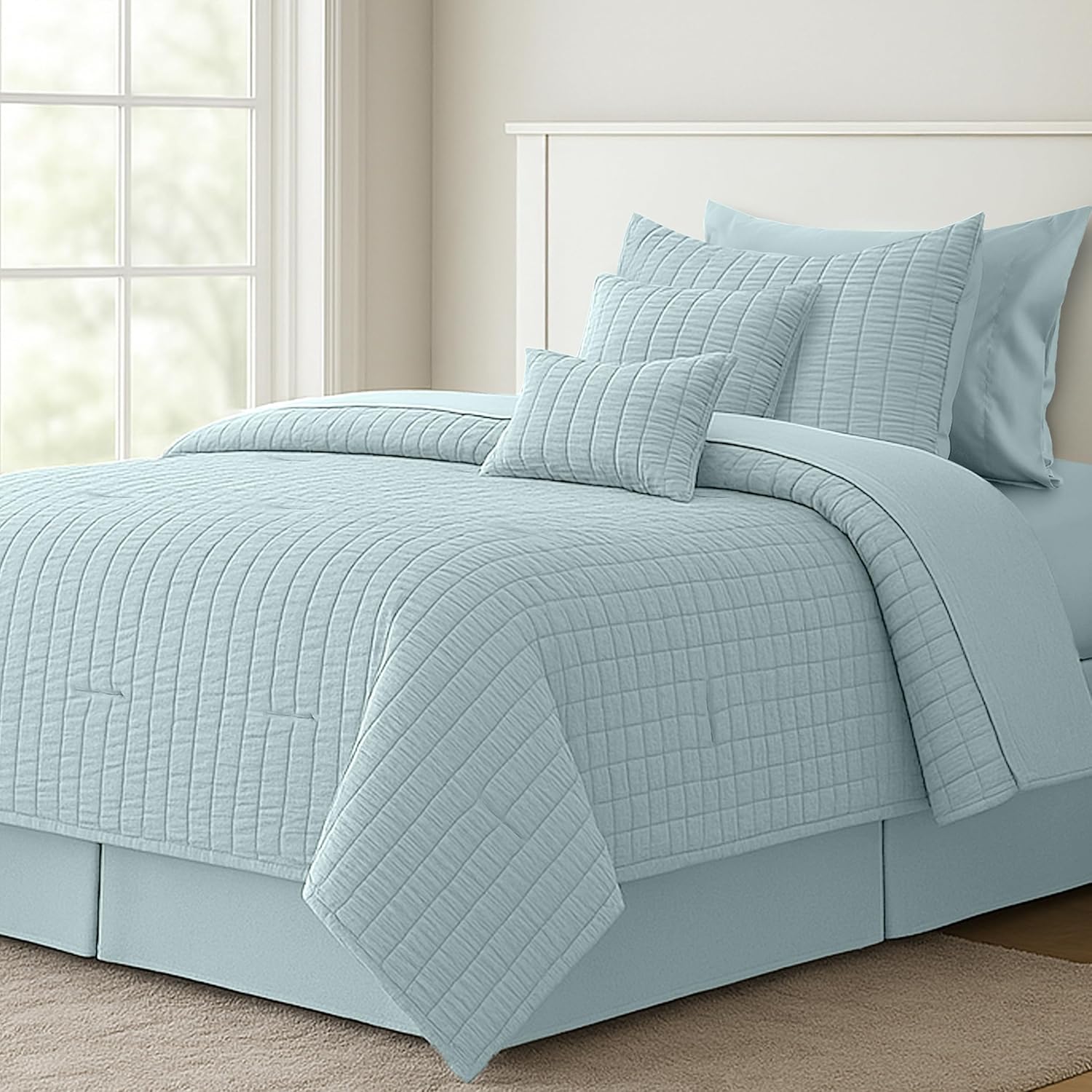| Included Components | 1pc Comforter (104"x 88") 4pc Sheet Set (1 Flat Sheet: 108"x 102", 1 Fitted Sheet: 78"x 80"+ 14", 2 Pillowcase: 20"x 40") 1pc Bed Skirt (78"x 80"+ 14") 2pc Shams (20"x 36"+2") 1pc Breakfast Pillow (12"x 18") 1pc Square Decorative Pillow (18"x 18") |