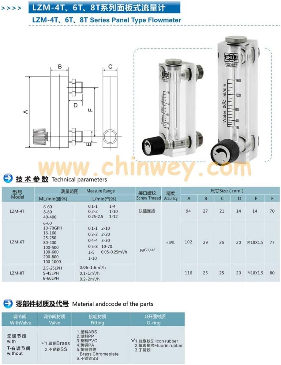 Air Flow MetersLZM-6T 2-20LPM/4-40SCFH panel type acrylic flowmeter(flow meter) with adjust valve bass fitting Female G1/4" Male M18*1.5