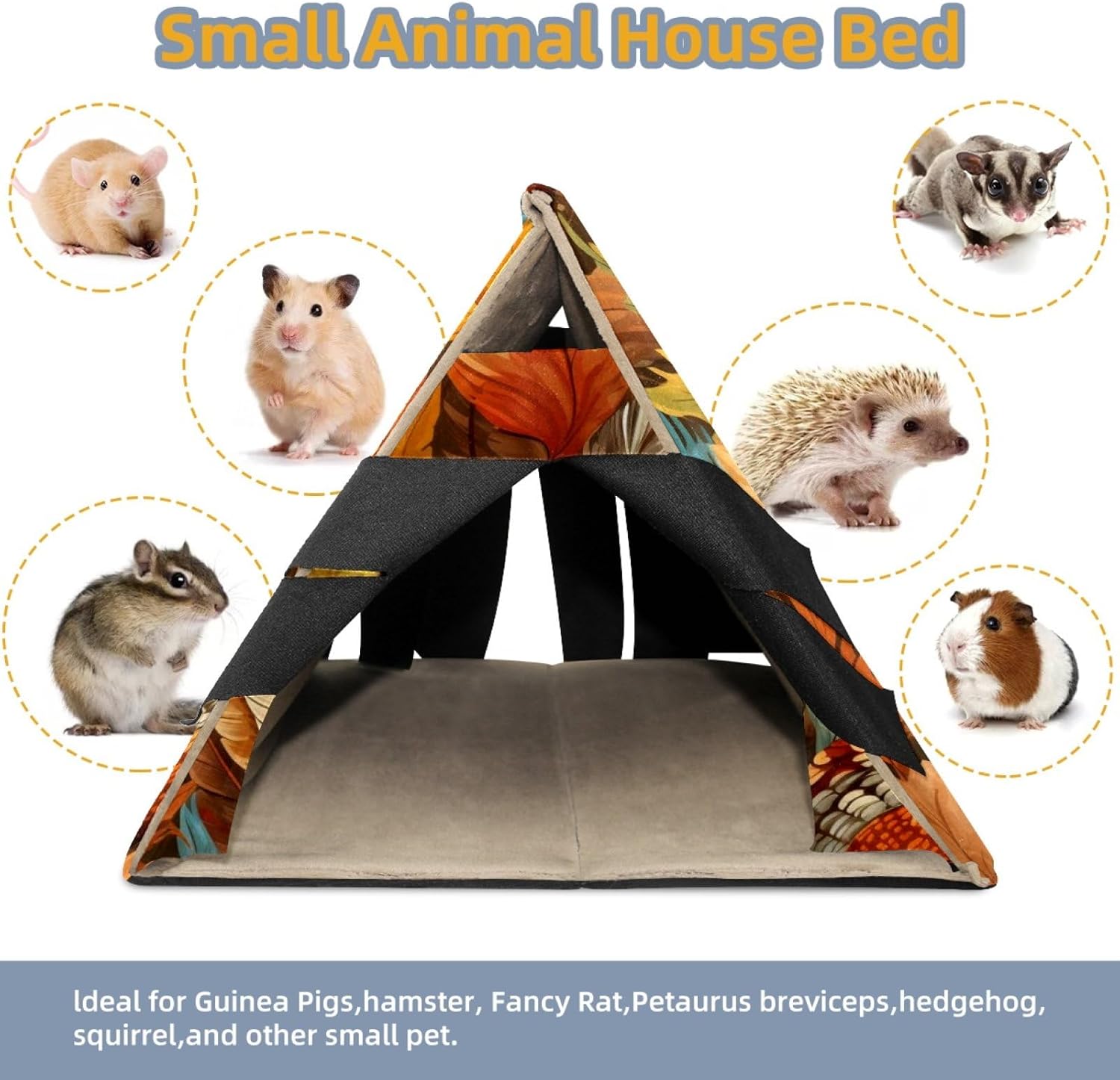 This "Little Hamster Home" is a series suitable for small pets such as hamsters, guinea pigs, rabbits, ferrets, mice, hedgehogs, and chinchillas. It is made of high-quality short velvet fabric and provides a private, warm, and comfortable hiding place, allowing your cute little animals to feel safe. Your baby can play, rest, hide, sleep, or engage in other activities in this safe haven, while also being a warm home. The size of 'Little Hamster House' is 10.2 inches long, 12 inches wide, and 8.5 inches high. The bottom is a foldable PP board, so when not in use, the hamster nest can be folded up without taking up space. By covering it with a layer of blankets, this cabin can become a comfortable hiding place. This small animal bed is made of high-quality soft short velvet fabric, with a sturdy structure that remains stable on the ground and will not collapse on its own. The ultra soft fabric makes your baby feel comfortable and warm in their own cabin. Plush curtains provide a private, warm, and comfortable resting place for your pets, allowing them to feel secure. Specially designed for guinea pigs, hedgehogs, golden bears, sugar kangaroos, hamsters, squirrels, chinchillas, small rabbits, flying dragons, and other small animals. When accidents cannot be avoided, there is no need to worry! This guinea pig bed can be hand washed and machine washed, suitable for air drying.