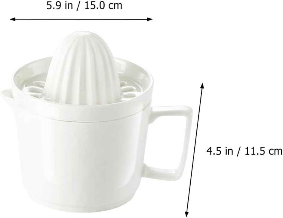 Package List 1 x Fruit Squeezer Cup Features -Material: Ceramic. -Product Info:Manual juicer -Size: About 15x14.5x11.5cm/5.89x5.7x4.52 inch. -Color: White. -Simple structure and convenient to use steam juicer. -You can easily extract a variety of fruit juices, such as orange, lemon and so on portable small juicer. -Manual fruits juicer cup, easy juice extraction portable household small juicer. -Ceramic material is for long-term use. -Removable, easy to wash and storage lemon juicer squeezer.Goods Informationfruit juicer manual The fruit juicer cup can squeeze various fruits, the natural juice is of high nutritional value.citrus juicer This is a manual juicer cup, made of premium ceramic material, it is and lightweight.lemon juicer squeezer Good for home, office, school and any places you want
