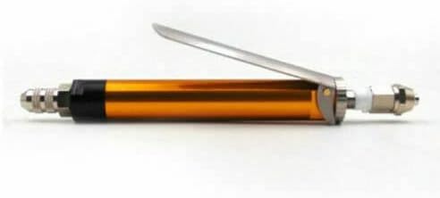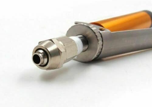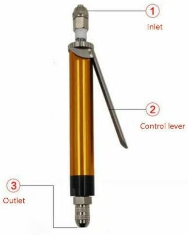 Description: Large flow of manual dispensing valve for the single component, a large caliber, manual valve with the pressure tank can be used, just press the control bar on the glue, loose that is broken glue, simple, economical and practical to Compressed air as the power to manually control the amount of glue size, can be accessed by various types of needle mouth, can be required to connect the hole 8 ~ 11mm hose can be connected with any pressure tank Parameter: 1. Type: thimble 2. Use the gas source: 4-7Kgf / cm 3. The minimum discharge volume: 0.1ml 4. Feeding port size: then 8 × 6mm hose 5. Operating viscosity: 1-1.000.000 cps 6. Weight: 180g 7. Outlet diameter: 3.0mm 8. Body Material: Manufactured from aluminum alloy (anodized), POM and stainless steel Include: 1 x Dispensing Valve