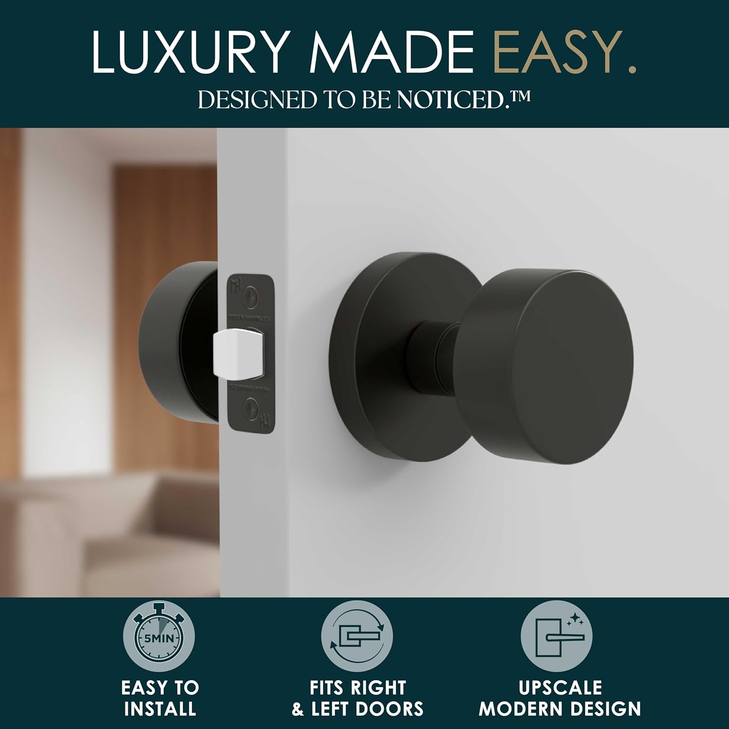 Mega Handles Buena Passage + Privacy Door Knobs - Fits All Standard Door Sizes - Matte Black