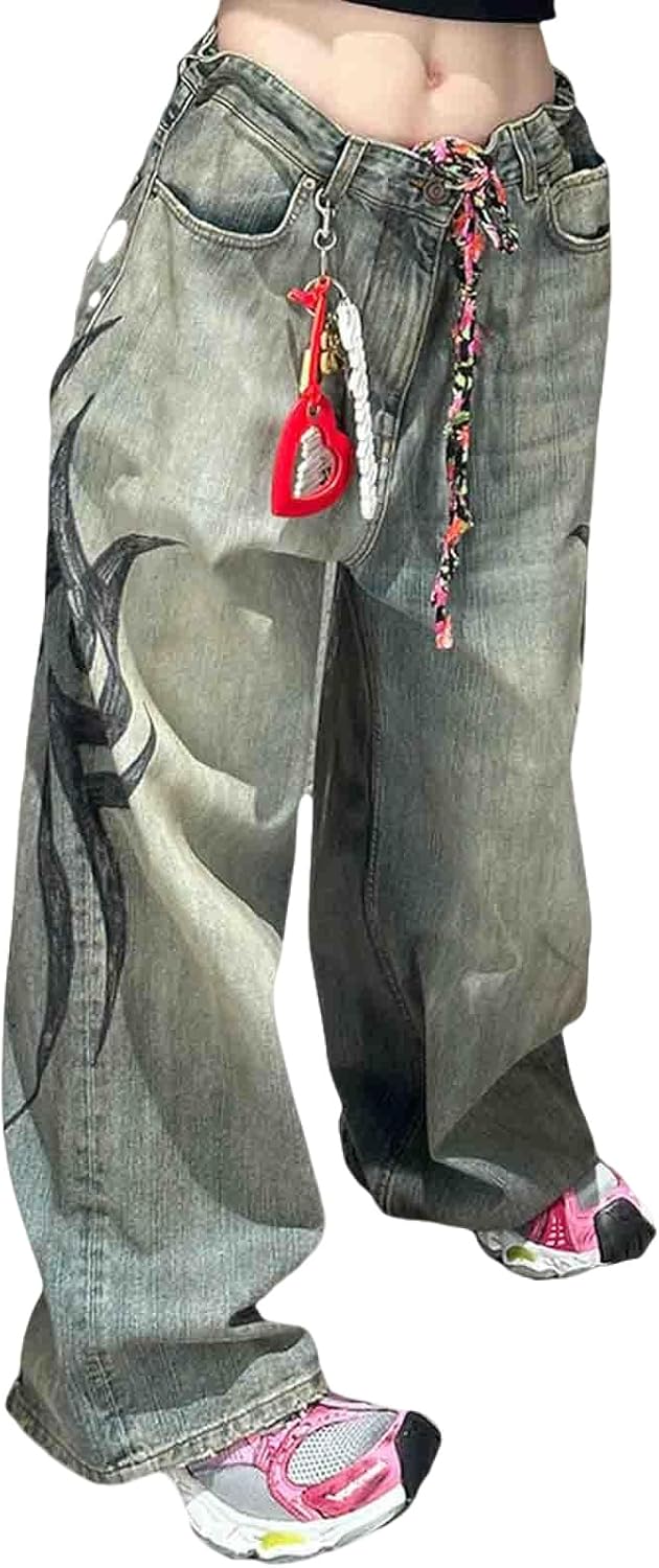 Fabric Name: Denim Color: Black, Blue Category: Jeans Pants length: Long pants Waist type: high waist size: S,M,L,XL,2XL Pants Type: Loose fit Popular elements: patterns, paintings, water washing Style: Straight leg pants
