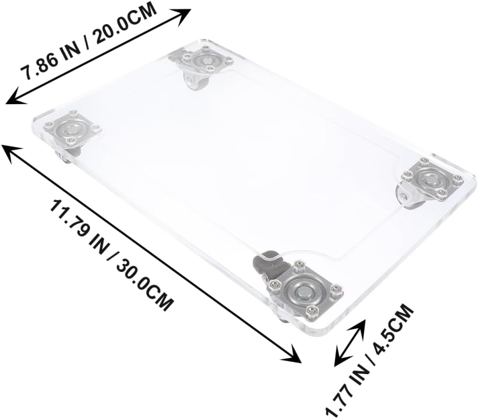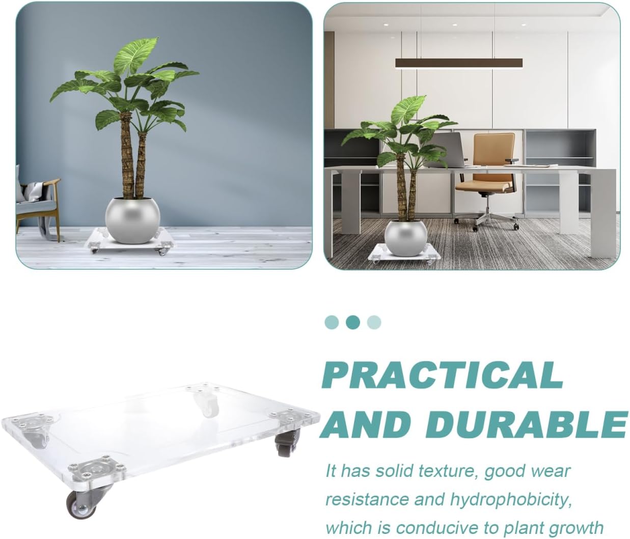 Package Include 1 x flowerpot tray Characteristics - Size: About30.00X20.00X4.50cm/11.79X7.86X1.77in Planter Storage Tray with Wheels- Color: Transparent Tray with Wheel- Material: Acrylic Acrylic Plant Pot SupportConve Movable Garden Pot Tray: Our square planter tray is designed to protect your floors while allowing for easy movement of your plants. No more worrying about scratches or wear from dragging pots across surfaces. This practical flowerpot stand makes it simple to rearrange your garden or indoor plants, enhancing your space effortlessly.Sturdy Plant Container Holder: This flower pot tray boasts a strong bearing capacity, ensuring it can support even the heaviest flowerpots with ease. Crafted from durable materials, our flowerpot holding tray is built to last, providing great support for your plants while maintaining its structural integrity over time. Enjoy peace of mind knowing your plants are securely held.Easy-to-Clean Tray with Wheels: Equipped with smooth-rolling wheels, our flower pot base is incredibly easy to clean and maintain. After prolonged use, simply roll it to your desired location for hassle-free cleaning. Save time and energy while keeping your gardening area tidy and organized. This feature makes it a must-have for any gardening enthusiast.Ideal Replacement for Old Trays: Upgrade your gardening setup with our flower pot bottom tray, a great replacement choice for old or broken flowerpot base trays. Enhance the functionality of your plant display while ensuring that your pots remain stable and secure. This modern solution revitalizes your home or garden decor effortlessly.Stylish and Functional Design: The simple and generous design of our mobile planter tray complements any decor style, making it an attractive addition to your home. Its sleek appearance enhances your indoor or outdoor spaces while providing practical functionality. Elevate your gardening experience with a tray that combines aesthetics and utility seamlessly.