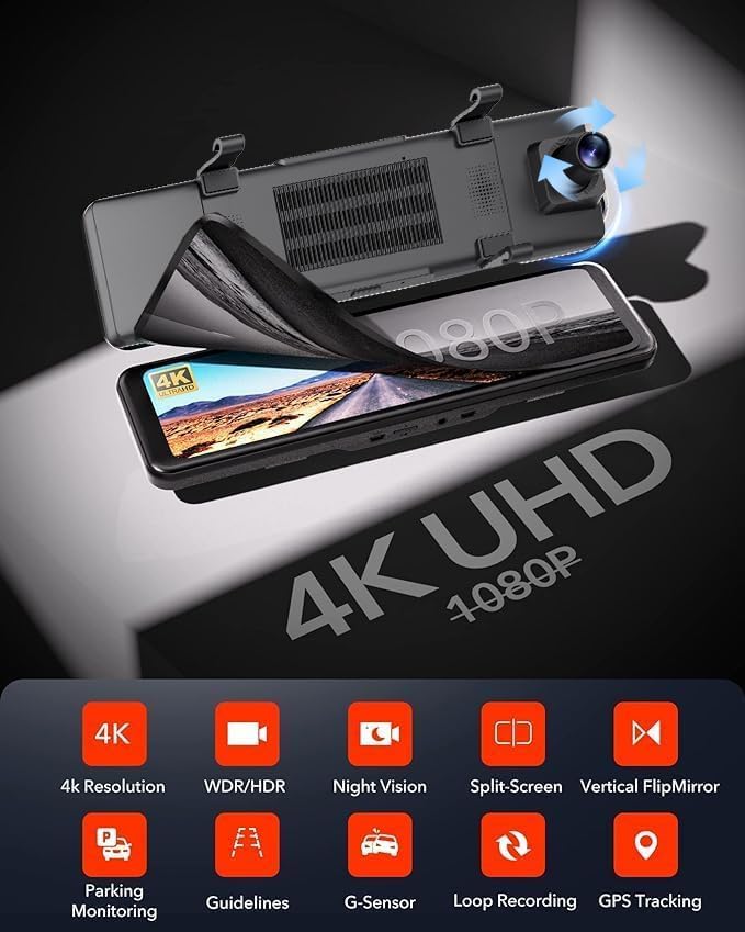 | Other Special Features of the Product | G-sensor & Emergency Recording,, Front and Rear Dual Recording, Night Vision, 4K High Resolution,, Streaming Media Rearview,, Parking Assistance,Wide Angle, Video Mode, Photo Mode, Playback Mode, |
