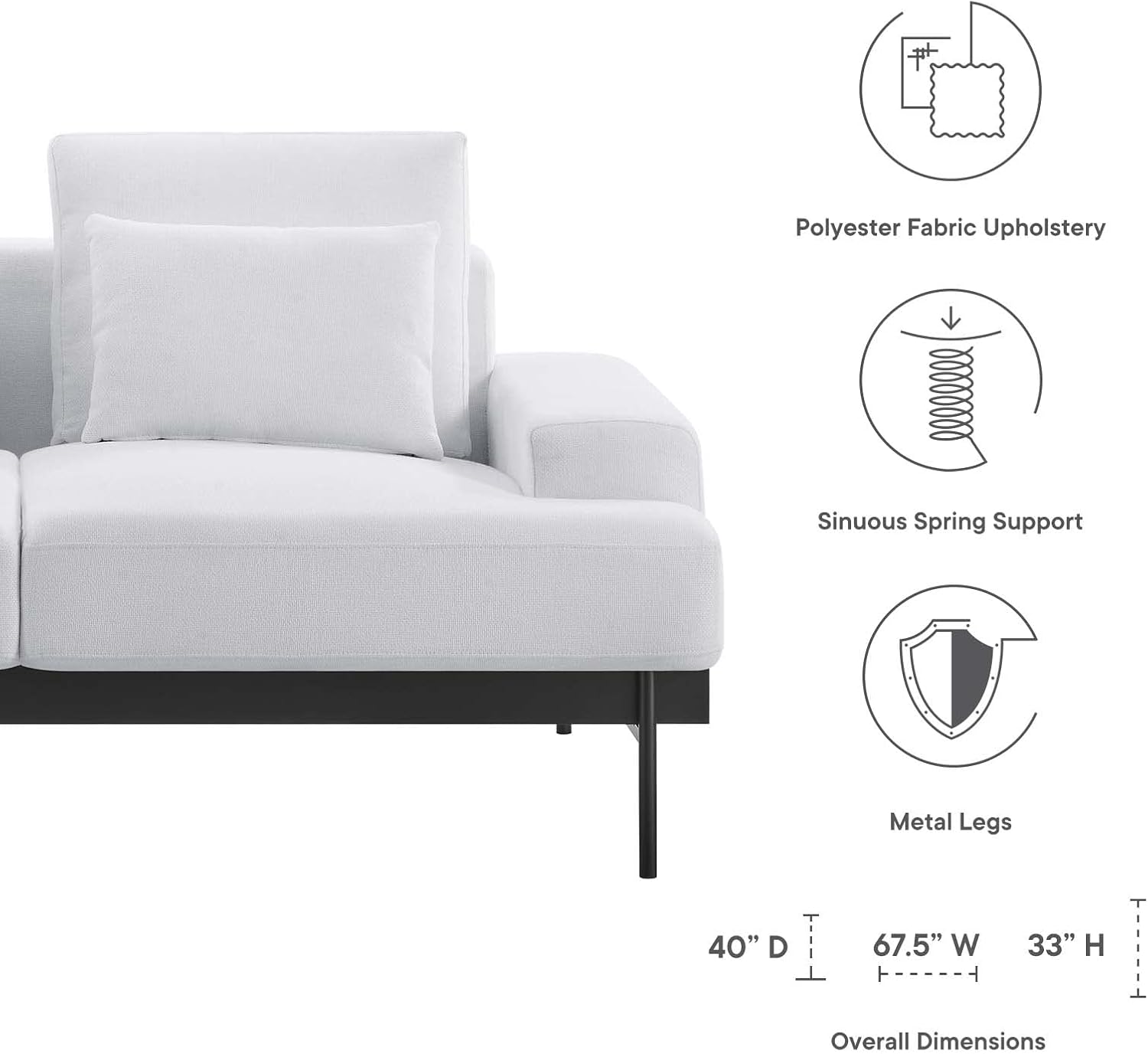 Dive deep into casual design and modern minimalism with the Proximity Fabric Upholstered Loveseat. Upholstered in soft yet durable polyester fabric, this loveseat features a tailored silhouette, deep, comfortable seats, and sleek lines for a retro modern look that complements a variety of living spaces. Resting on a solid wood frame with powder-coated metal legs and non-marking foot pads, this two-seater sofa is complete with dense foam padding and a sinuous spring support system to offer a premium seating experience. This upholstered loveseat is the perfect addition to a living room, lounge area, home office, or bedroom sitting area. Assembly required. Weight Capacity: 661 lbs.