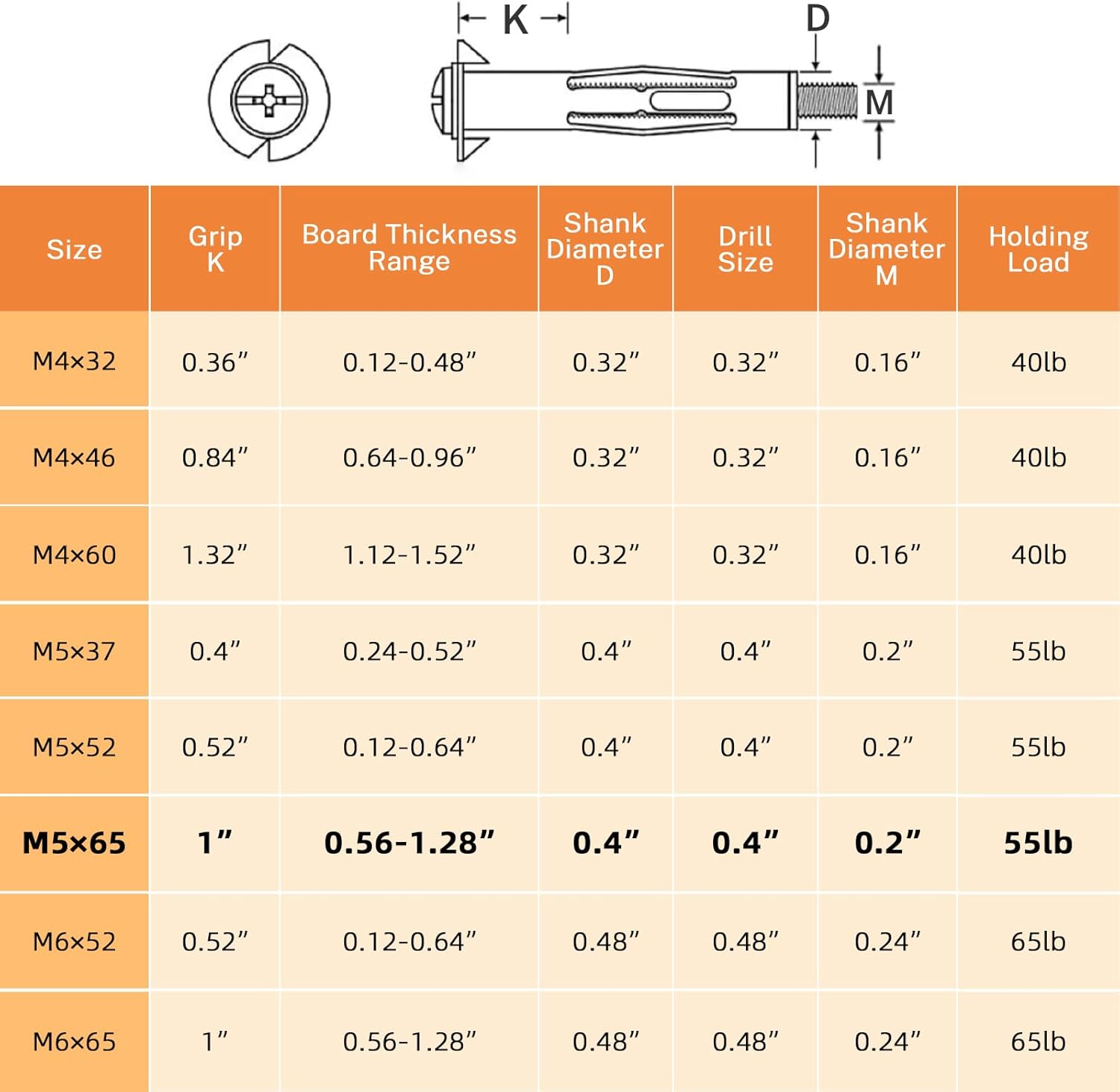FOREVTL Molly Bolts Tool & M5*65mm Hollow Wall Anchors