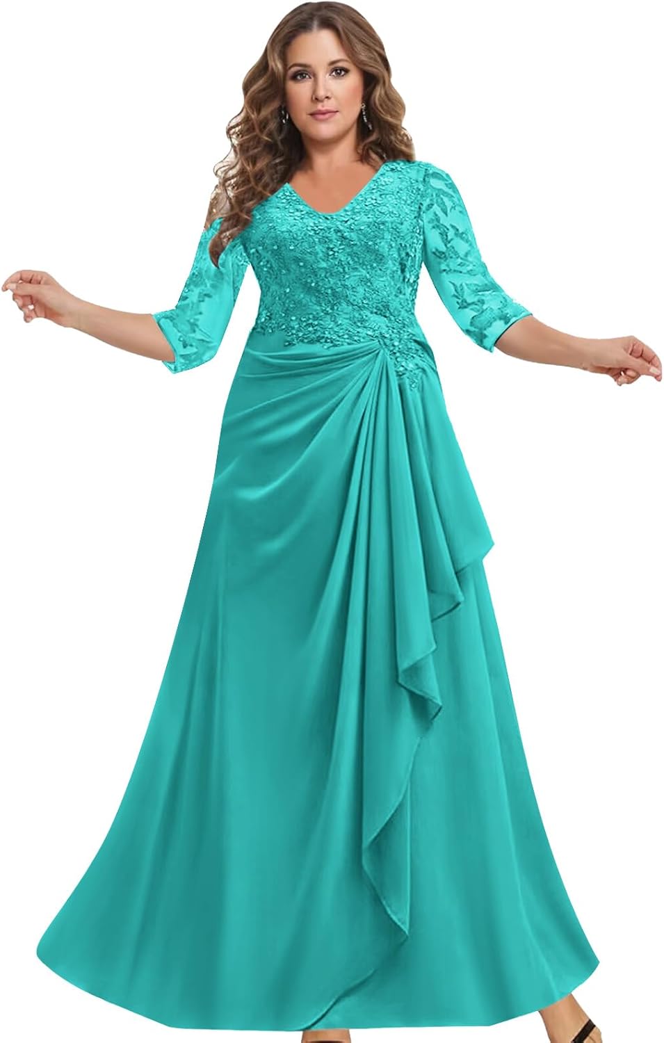 Fabric: Chiffon Lace Appliques Mother of The Bride Dress. Silhouette: A Line Wedding Guest Dress. Back Closure: Lace-up, Drawstring, Corset Evening Dresses. Neckline: V Neck Mother of The Groom Dress. Sleeve Style: 3/4 illusion Long Sleeve Bridesmaid Dresses. Hemline: Floor Length Grandmother of The Bride Dresses. Features: Floral Lace Mother of The Bride Dresses, Ruffle Chiffon Ruched Empire Waist Long Formal Dress with Sleeves. Occasions: Perfect as mother of the bride dresses, bridesmaid dresses, prom dresses, evening dresses for women, festival birthday party gowns for teens, ball gown, wedding guest dress, homecoming dresses, cocktail dress, black tie dress. Perfect for other formal or semi-formal special occasions. Size: To ensure the dress will fit you, please check detailed measurements on the size chart and choose the right size. (Size chart follows dress images.) If you want the dress to be customized, please send us below measurements. 1.Bust ___ inch or ___ cm 2.Waist ___ inch or ___ cm 3.Hips ___ inch or ___ cm 4.Height (barefoot) ___ inch or ___ cm 5.Shoulder to floor (barefoot) ___ inch or ___ cm 6.Heels ___ inch or ___ cm (or flats) Warm Tips 1.The real color of the dress may be slightly different as the computer screen is different. 2.Please allow 1-3cm differs due to manual measurement.
