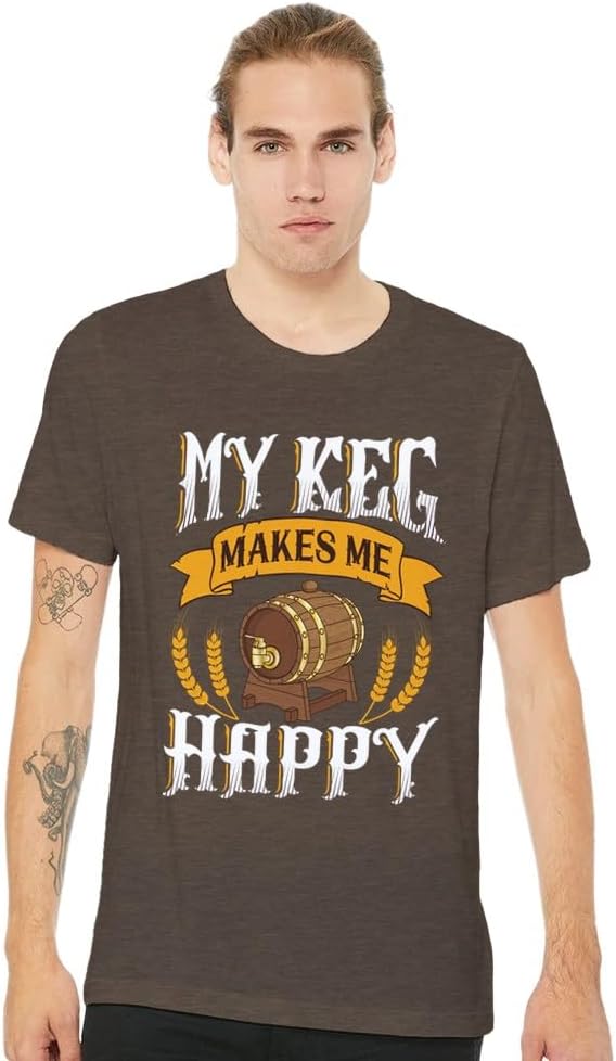 Love beer? This "My Keg Makes Me Happy" graphic tee is perfect for you! Featuring a vintage-style wooden beer keg design, this unisex shirt is ideal for craft beer enthusiasts or anyone who enjoys a cold brew. This tee is comfortable for everyday wear and makes a great gift for birthdays, holidays, or just because! Whether you're hitting the brewery or relaxing at home, this fun, stylish shirt is a must-have for any beer lover. Available in multiple sizes and colors. Features Unisex Tailored Fit Side-seamed Shoulder Taping Preshrunk Fabric Material Solid colors are 100% combed and ring-spun cotton Ash color is 99% combed, ring-spun cotton, 1% polyester Heather colors are 52% combed and ring-spun cotton, 48% polyester Athletic and Black Heather are 90% combed and ring-spun cotton, 10% polyester Fiber content may vary by color Return Policy We accept returns and exchanges up to 30 days from the date of purchase. Terms and conditions do apply. Click here to read our full policy.