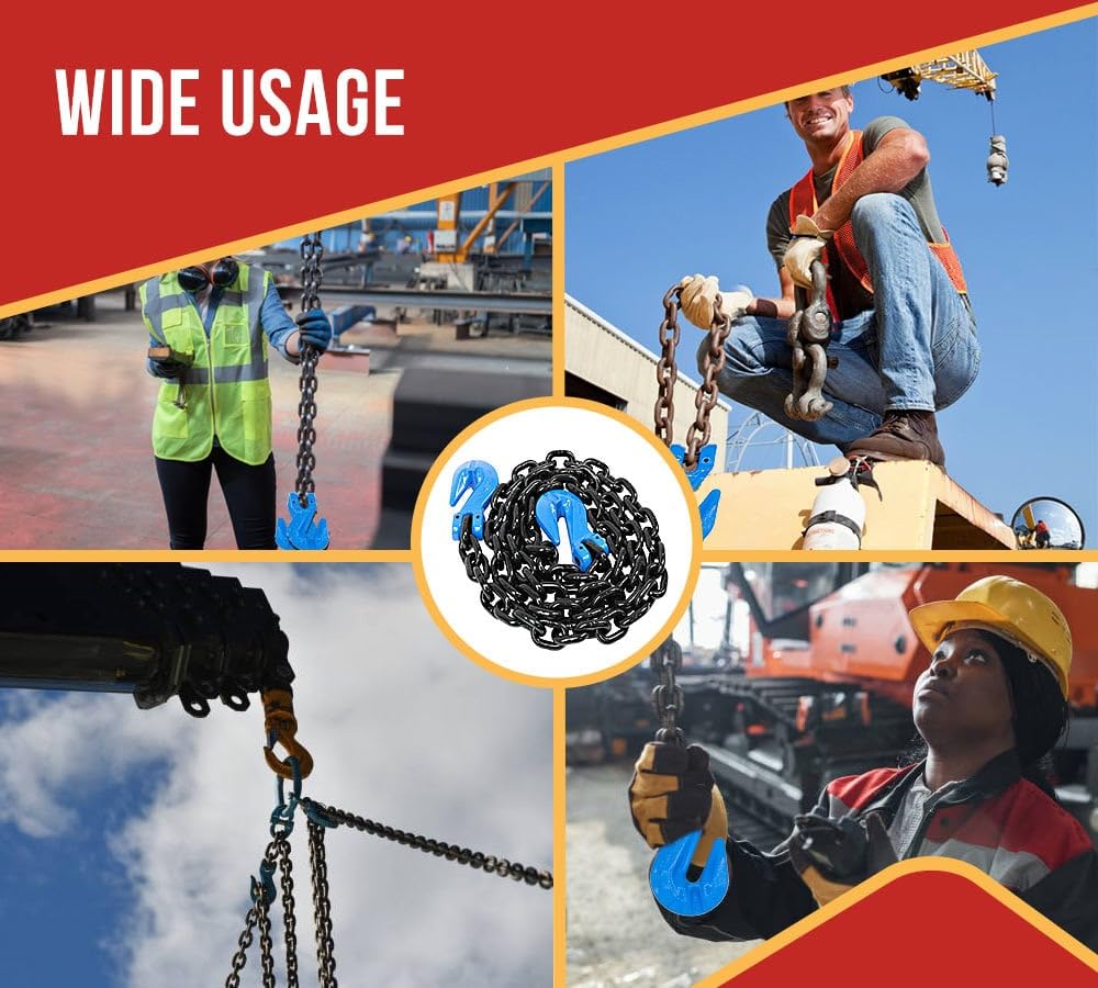 Mytee Products 3/8" x 16' Grade 100 Transport Chain with G100 Grab Hooks, 8800 lbs WLL | Heavy-Duty Trucker Chain for Cargo & Load Securement - Tow Transport Chain