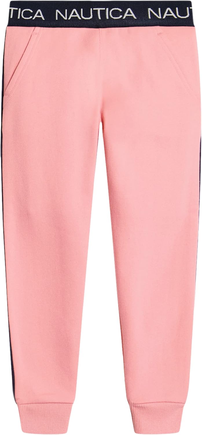 Nautica Girls' Logo Sweatpants, Fleece Joggers with Ribbed Cuffs & Functional Side Pockets