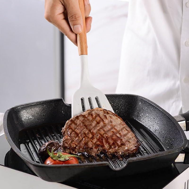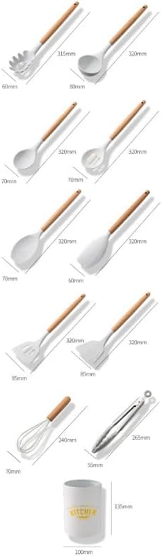`: Spoon and Spatula SetMaterial: Silicone + solid woodSize: As shownColor: As shownFunctions: Cooking, baking.The set includes: Stir frying spatulas, soup spoons, pasta claws, etcShoulder bag: Shovel and spoon set * 1 set (excluding display items)Attention:1. Please allow 1-2cm error due to manual measurement. Thank you.2. The actual color of the product may be slightly different from the image shown. Please refer to the actual product.Investing in a handy set of spatulas can significantly enhance the smoothness and enjoyment of cooking.