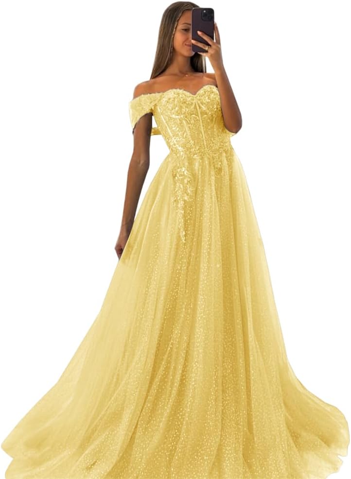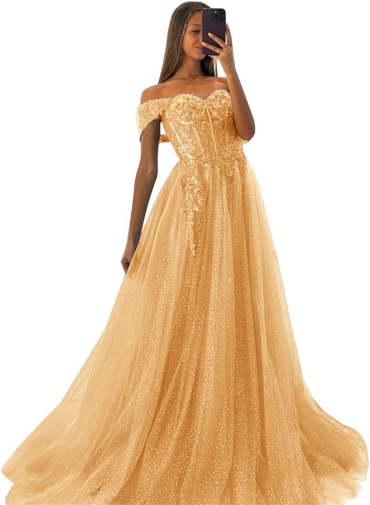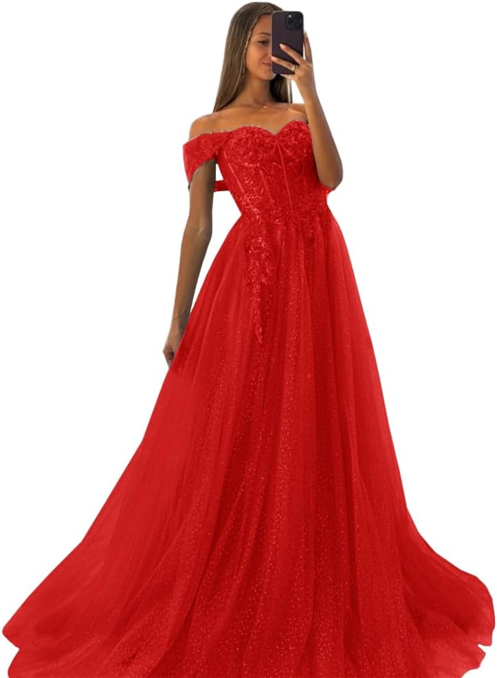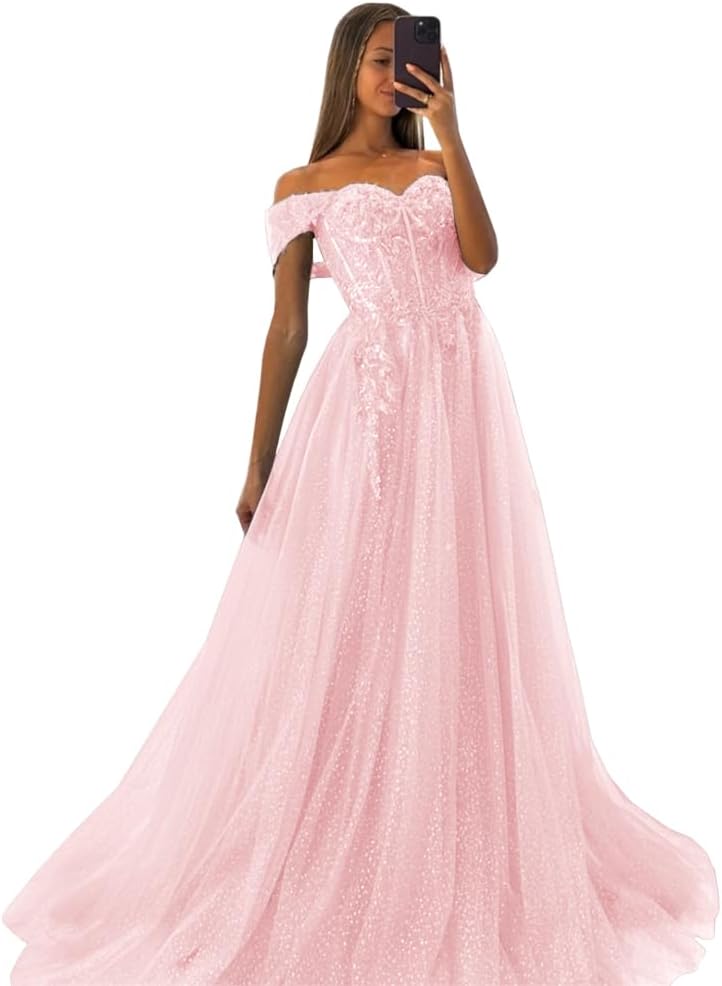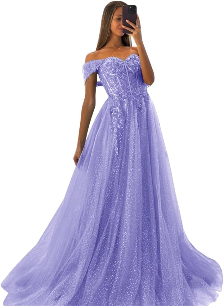 | Fabric Type | Long Sparkly Lace Appliques Tulle Off the Shoulder A Line Prom Dresses 2025 |